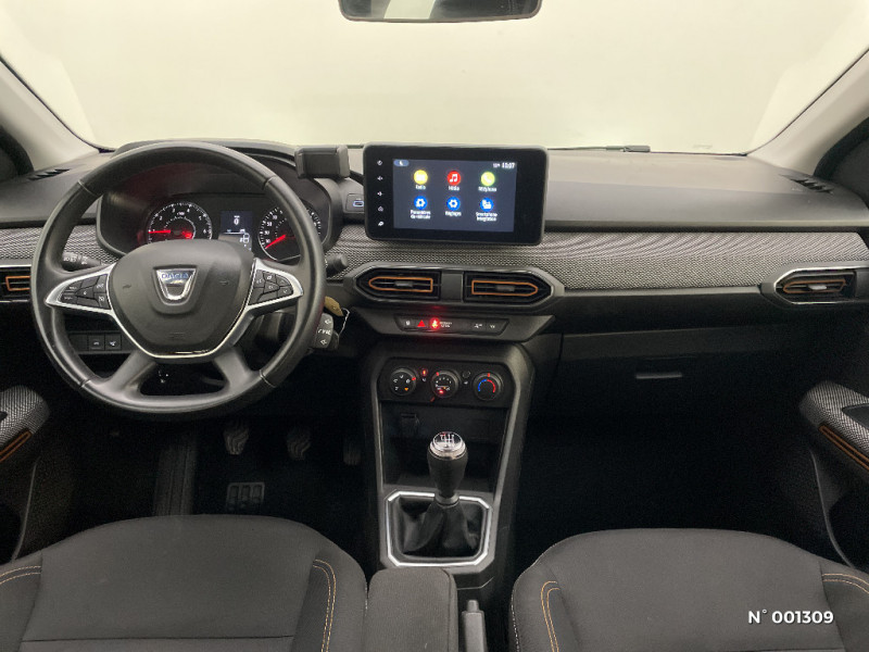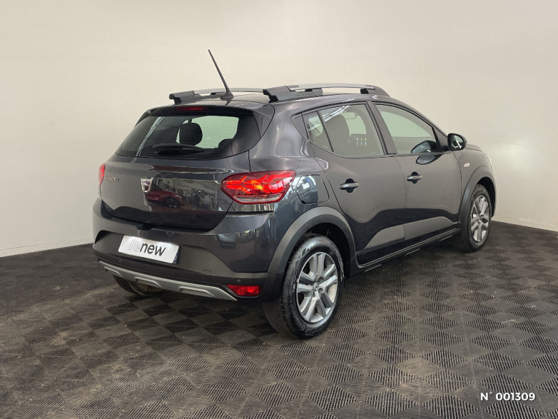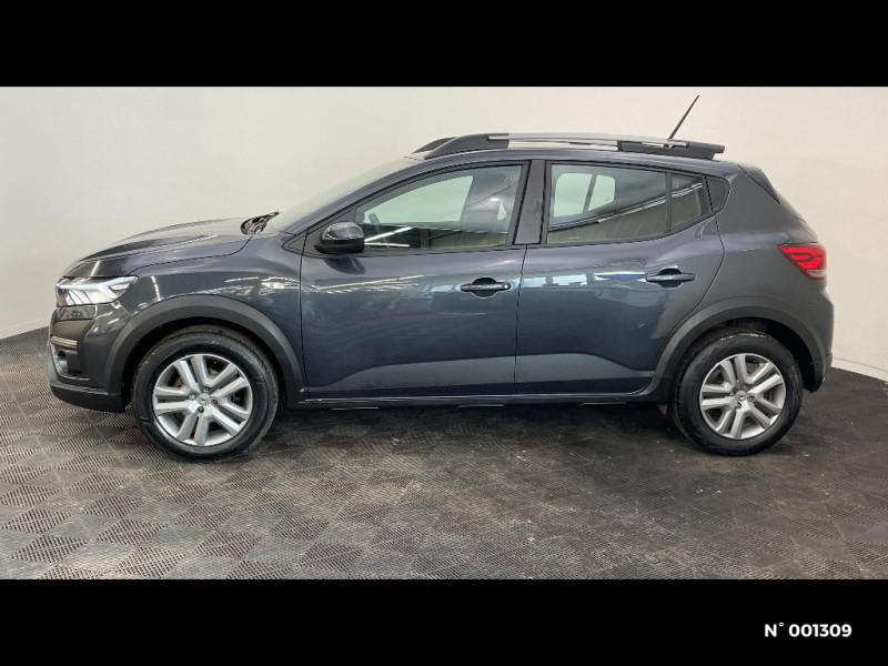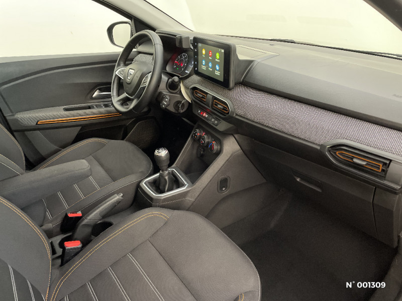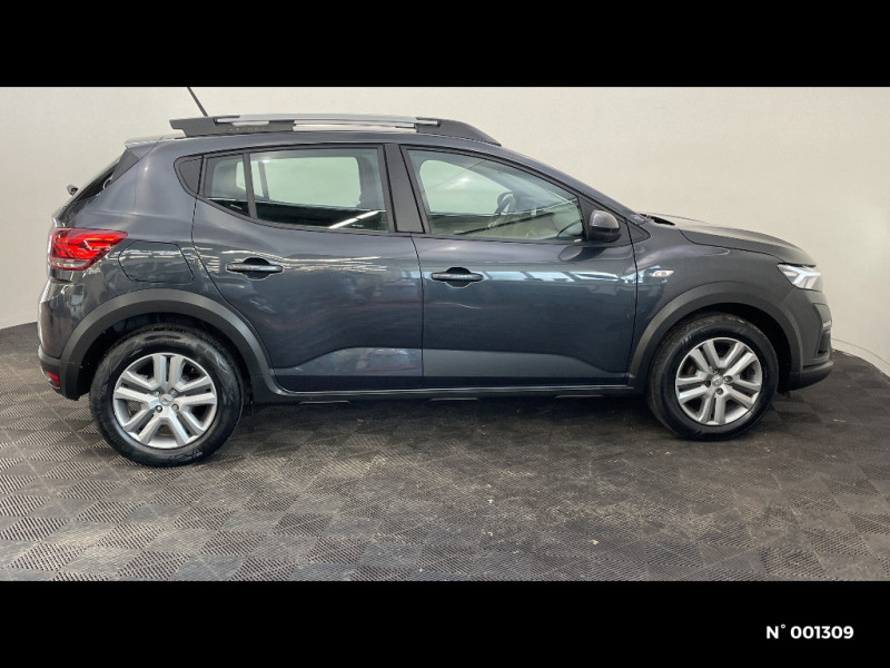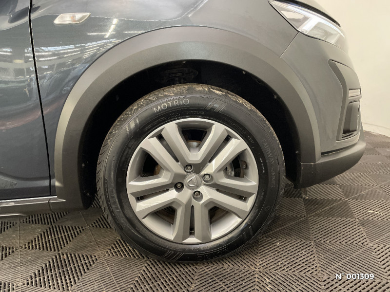 Fonction éco-mode / Kit de gonflage / Rétroviseurs extérieurs ton carrosserie / Peinture opaque / Clé 3 boutons / Console basse + rangement ouvert / Cluster TFT / Enjoliveur 16'' Saria - Stepway / Harmonie intérieur / Sellerie Stepway avec surpiqures / Volant Soft Feel TEP / Airbag latéral avant : thorax + rideau / Feux arrières avec signature lumineuse Y / Signature lumineuse DACIA en Y à LED / Rappel de bouclage de ceintures / Plancher de coffre plat / Media display (écran 8'', réplication smartphone, 4 haut-parleurs, 1 port USB) / Système de freinage d'urgence autonome à des vitesses interurbaines 7-170km/h / Alternateur renforcé / Classes énergetiques B