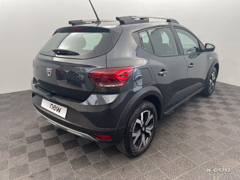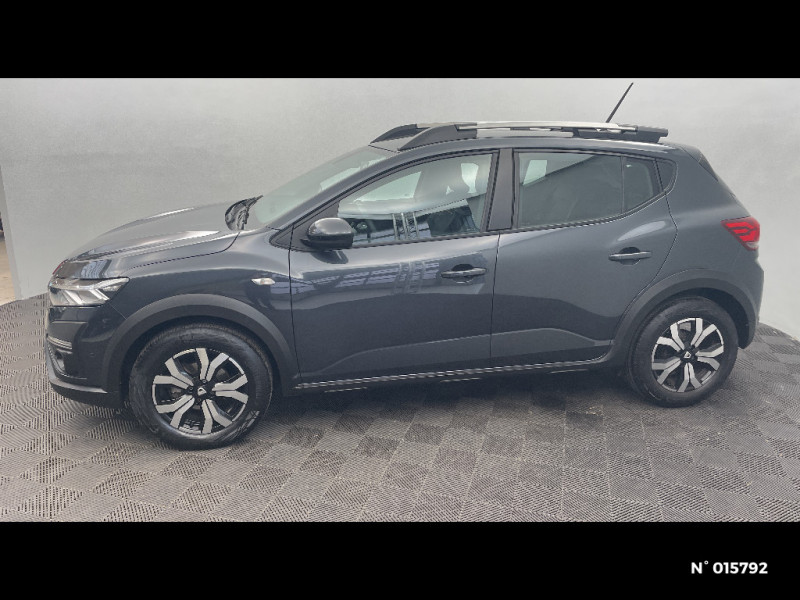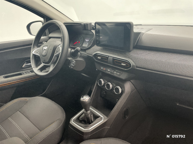 Fonction éco-mode / Kit de gonflage / Rétroviseurs extérieurs ton carrosserie / Clé 3 boutons / Console basse + rangement ouvert / Cluster TFT / Enjoliveur 16'' Saria - Stepway / Harmonie intérieur / Sellerie Stepway avec surpiqures / Volant Soft Feel TEP / Airbag latéral avant : thorax + rideau / Feux arrières avec signature lumineuse Y / Signature lumineuse DACIA en Y à LED / Rappel de bouclage de ceintures / Plancher de coffre plat / Media display (écran 8'', réplication smartphone, 4 haut-parleurs, 1 port USB) / Système de freinage d'urgence autonome à des vitesses interurbaines 7-170km/h / Classe energetique C / Alternateur renforcé