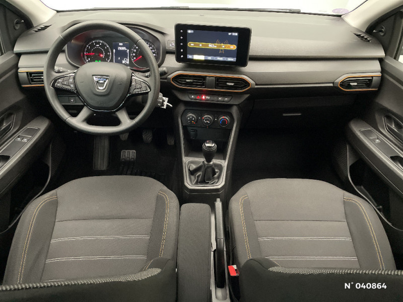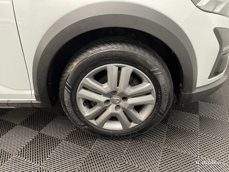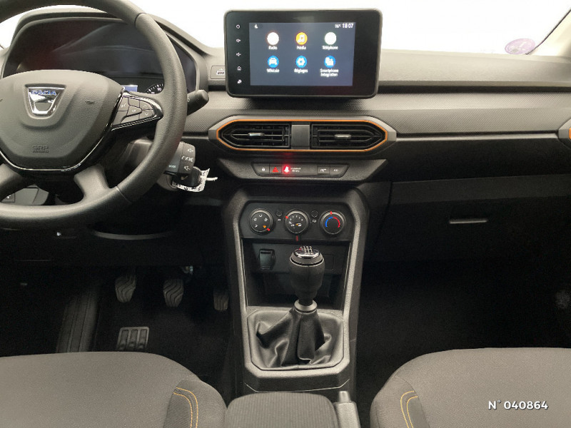 Fonction éco-mode / Barres de toit longitudinales / Volant mousse / Clé 3 boutons / Console basse + rangement ouvert / Cluster TFT / Enjoliveur 16'' Saria - Stepway / Harmonie intérieure / Sellerie Stepway avec surpiqures / Media control (Streaming audio bluetooth avec support téléphone, 2 haut-parleurs, 1 USB) / Kit de gonflage / Lève-vitres AR manuels / Peinture opaque / Alerte d'oubli de bouclage des ceintures de sécurité / Airbag latéral avant : thorax + rideau / Feux arrières avec signature lumineuse Y / Système de freinage d'urgence autonome à des vitesses interurbaines 30-140km/h / Signature lumineuse DACIA en Y à LED / Rappel de bouclage de ceintures / Système de freinage d'urgence autonome à des vitesses interurbaines 7-170km/h / Classe energetique C / Alternateur renforcé