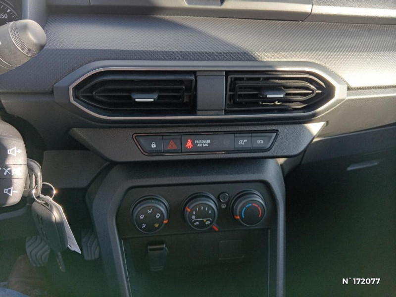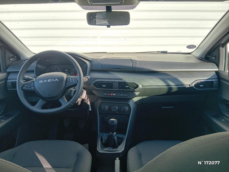 Fonction éco-mode / Kit de gonflage / Lève-vitres AR manuels / Volant mousse / Console basse + rangement ouvert / Cluster TFT / Sellerie essentiel / Media control (Streaming audio bluetooth avec support téléphone, 2 haut-parleurs, 1 USB) / Airbag latéral avant : thorax + rideau / Feux arrières avec signature lumineuse Y / Signature lumineuse DACIA en Y à LED / Rappel de bouclage de ceintures / Système de freinage d'urgence autonome à des vitesses interurbaines 7-170km/h / Nouvelle identité visuelle / Enjoliveur 15'' Elma / Roues tôle 15" / Chauffage avec recyclage d'air / Clé 3 boutons