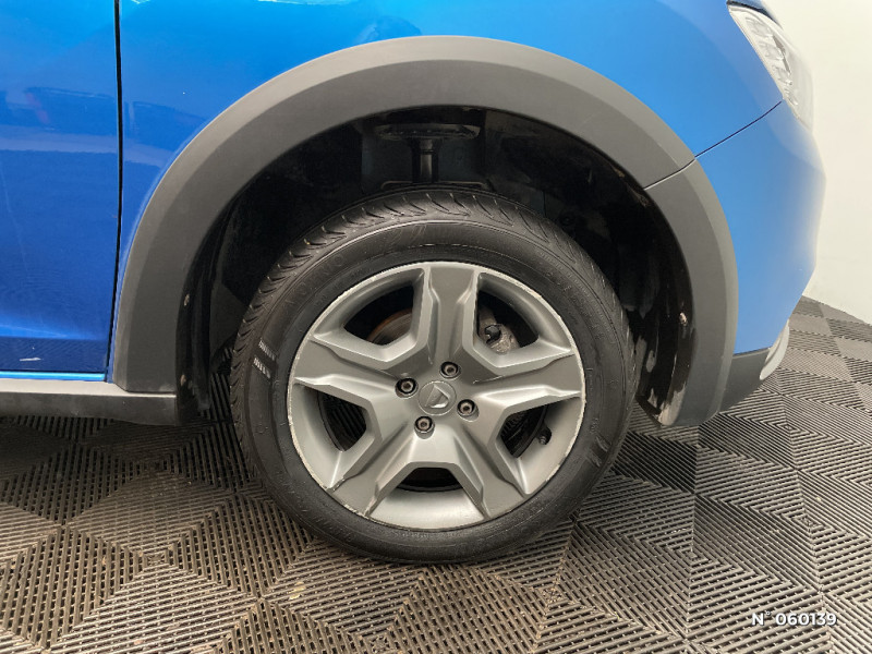 Poignées de portes intérieures chrome / Sellerie Stepway / Volant Dacia 4 branches / R-Plug & Music (radio, prises jack et USB, Bluetooth) / Poignées de portes intérieures chrome satiné / Stop & Start / Eclairage du coffre / Indicateur de changement de vitesse / Harmonie carbone foncé / Alerte non bouclage de ceintures AV / Poignées de portes extérieures noires / Kit de gonflage / Lève-vitres AR manuels / Peinture Blanc Glacier / Boucliers ton carosserie / Jantes design 16'' Bayadere Dark Metal