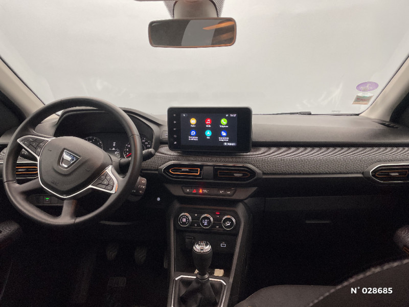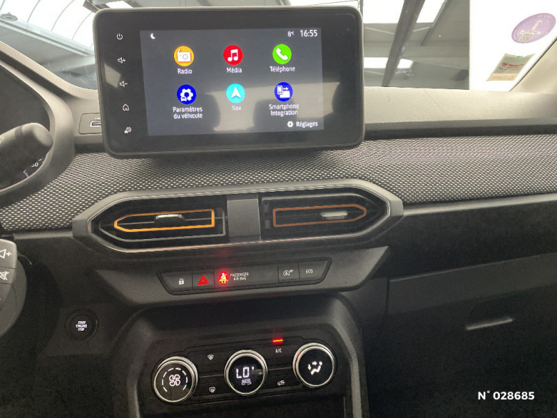 Console basse + rangement ouvert / Peinture opaque / Fonction éco-mode / Kit de gonflage / Rétroviseurs extérieurs ton carrosserie / Cluster TFT / Enjoliveur 16'' Saria - Stepway / Harmonie intérieur / Sellerie Stepway avec surpiqures / Volant Soft Feel TEP / Airbag latéral avant : thorax + rideau / Feux arrières avec signature lumineuse Y / Signature lumineuse DACIA en Y à LED / Rappel de bouclage de ceintures / Plancher de coffre plat / Media display (écran 8'', réplication smartphone, 4 haut-parleurs, 1 port USB) / Système de freinage d'urgence autonome à des vitesses interurbaines 7-170km/h / Alternateur renforcé / Classes énergetiques B / Clé 3 boutons