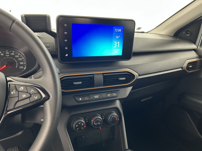 Airbag latéral AV : thorax + rideau / Clé 3 boutons / Console basse + rangement ouvert / Eclairage du coffre / Enjoliveur 16'' Saria / Feux AR avec signature lumineuse Y / Fonction éco-mode / Kit de gonflage / Lève-vitres AR manuels / Media control (Streaming audio bluetooth avec support téléphone, 2 haut-parleurs, 1 USB) / Nouvelle identité visuelle / Rappel de bouclage de ceintures / Sellerie Stepway avec surpiqures / Signature lumineuse DACIA en Y à LED / Système de freinage d'urgence autonome à des vitesses interurbaines 7-170km/h / Tableau de bord avec écran numérique 3,5'' et compteurs analogiques / Volant mousse /