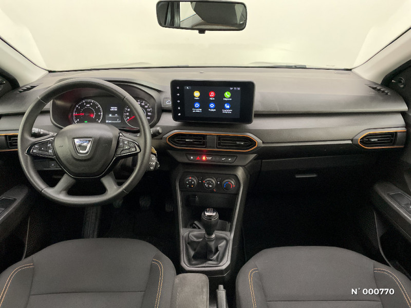 Media control (Streaming audio bluetooth avec support téléphone, 2 haut-parleurs, 1 USB) / Sellerie Stepway avec surpiqures / Airbag latéral avant : thorax + rideau / Feux arrières avec signature lumineuse Y / Signature lumineuse DACIA en Y à LED / Rappel de bouclage de ceintures / Système de freinage d'urgence autonome à des vitesses interurbaines 7-170km/h / Alternateur renforcé / Classes énergetiques B / Volant mousse / Fonction éco-mode / Kit de gonflage / Lève-vitres AR manuels / Peinture opaque / Clé 3 boutons / Console basse + rangement ouvert / Cluster TFT / Enjoliveur 16'' Saria - Stepway / Harmonie intérieure
