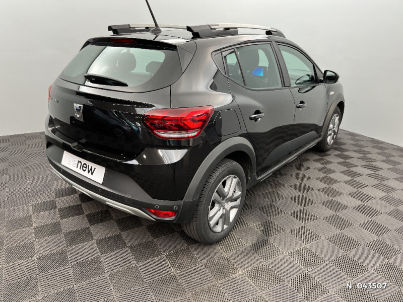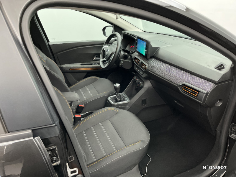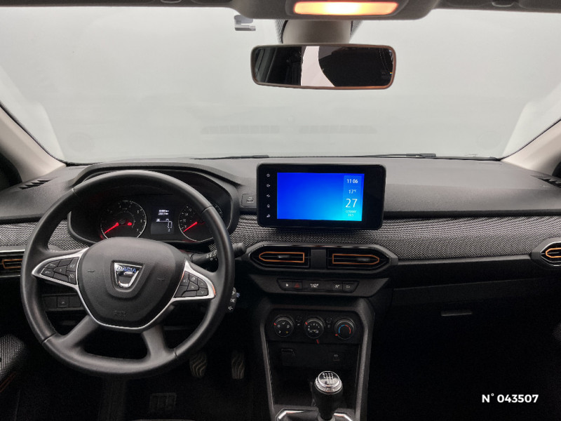 Fonction éco-mode / Kit de gonflage / Rétroviseurs extérieurs ton carrosserie / Peinture opaque / Clé 3 boutons / Console basse + rangement ouvert / Cluster TFT / Enjoliveur 16'' Saria - Stepway / Harmonie intérieur / Sellerie Stepway avec surpiqures / Feux arrières avec signature lumineuse Y / Signature lumineuse DACIA en Y à LED / Rappel de bouclage de ceintures / Plancher de coffre plat / Media display (écran 8'', réplication smartphone, 4 haut-parleurs, 1 port USB) / Système de freinage d'urgence autonome à des vitesses interurbaines 7-170km/h / Alternateur renforcé / Classes énergetiques B / Volant Soft Feel TEP / Airbag latéral avant : thorax + rideau