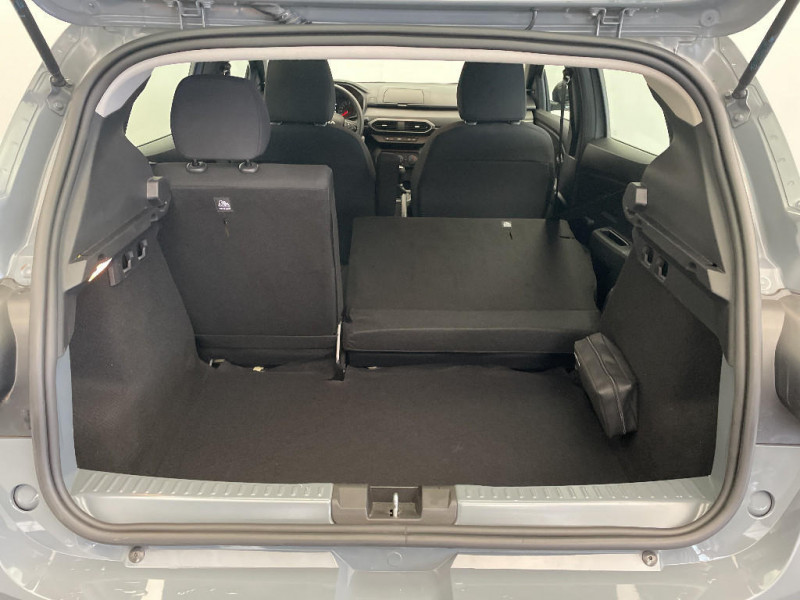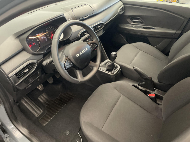 Sellerie essentiel / Roues tôle 15" / Airbag latéral avant : thorax + rideau / Chauffage avec recyclage d'air / Peinture opaque / Volant mousse / Fonction éco-mode / Kit de gonflage / Lève-vitres AR manuels / Système de freinage d'urgence autonome à des vitesses interurbaines 7-170km/h / Nouvelle identité visuelle / Clé 3 boutons / Console basse + rangement ouvert / Cluster TFT / Feux arrières avec signature lumineuse Y / Signature lumineuse DACIA en Y à LED / Rappel de bouclage de ceintures / Enjoliveur 15'' Elma / Media control (Streaming audio bluetooth avec support téléphone, 2 haut-parleurs, 1 USB)