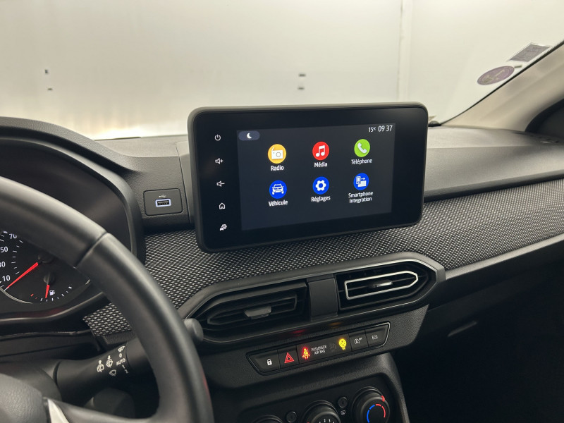 Signature lumineuse DACIA en Y à LED: / Airbag latéral AV : thorax + rideau: / Classes énergetiques B: / Cluster TFT: / Clé 3 boutons: / Console basse + rangement ouvert: / Enjoliveur 15'' Sorane: / Feux AR avec signature lumineuse Y: / Fonction éco-mode: / Harmonie intérieure: / Kit de gonflage: / Media display (écran 8'', réplication smartphone, 4 haut-parleurs, 1 port USB): / Rappel de bouclage de ceintures: / Roues tôle 15": / Rétroviseurs extérieurs ton carrosserie: / Système de freinage d'urgence autonome à des vitesses interurbaines 7-170km/h: / Volant Soft Feel TEP: /