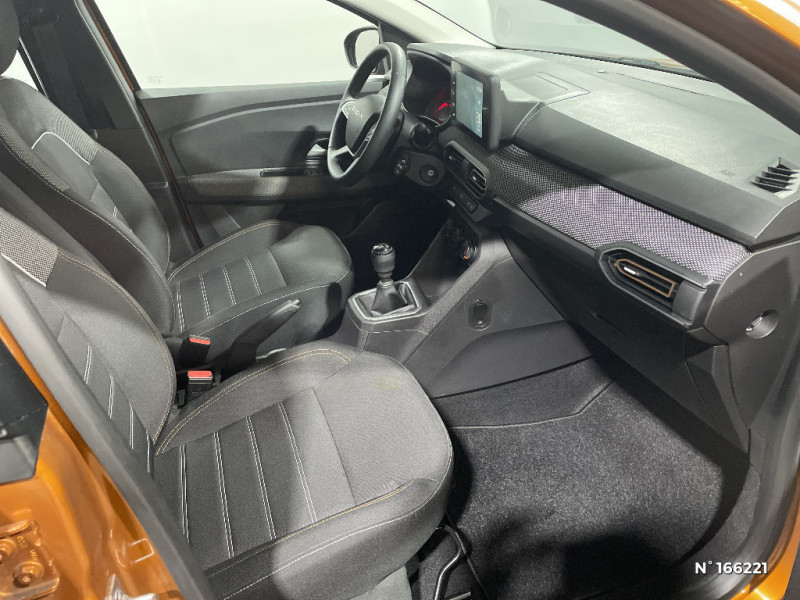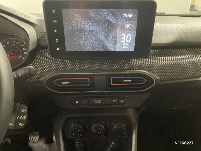 Nouvelle identité visuelle / Tableau de bord avec écran numérique 3,5'' et compteurs analogiques / Système de freinage d'urgence avancé (pieton, deux-rorues et intersection) / Kit de gonflage / Rétroviseurs extérieurs ton carrosserie / Clé 3 boutons / Console basse + rangement ouvert / Sellerie Stepway avec surpiqures / Volant Soft Feel TEP / Airbag latéral avant : thorax + rideau / Prédisposition Ethylotest / Alerte franchissement de ligne et assistant maintien dans la voie / Enjoliveur 16'' ATARA DARK / Media Display (écran tactile 8'' sans navigation, radio, réplication smartphone USB, 4 haut-parleurs audiostreaming Bluetooth, satellite de commandes au volant, 1 prise USB-A et 1 prise USB-C) / Eclairage du coffre / Fonction éco-mode / Feux arrières avec signature lumineuse Y / Signature lumineuse DACIA en Y à LED / Rappel de bouclage de ceintures