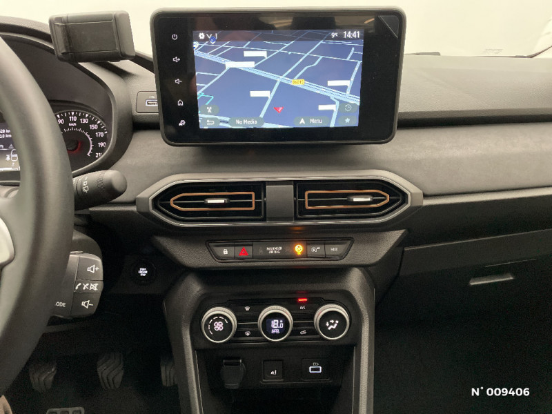 Cartographie Europe de l'Ouest / Cluster TFT / Console semi-haute + rangement fermé avec accoudoir / Feux AR avec signature lumineuse Y / Airbag latéral AV : thorax + rideau / Fonction éco-mode / Jantes 16'' Mahalia diamantée noir / Kit de gonflage / Media NAV (écran 8'' avec réplication smartphone, navigation, 6 haut-parleurs, 2 USB) / Mise à jour gratuite pendant 3 ans de la cartographie / Nouvelle identité visuelle / Peinture opaque / Plancher de coffre plat / Rappel de bouclage de ceintures / Sellerie Stepway avec surpiqures / Signature lumineuse DACIA en Y à LED / Système de freinage d'urgence autonome à des vitesses interurbaines 7-170km/h / Volant Soft Feel TEP / Alternateur renforcé