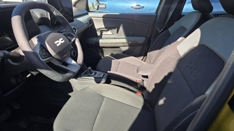 Airbag latéral AV : thorax + rideau / Alerte franchissement de ligne et assistant maintien dans la voie / Antenne requin / Boîte de vitesse automatique 6 / Console haute + rangement fermé avec accoudoir / Eclairage du coffre / Extended Grip / Feux AR avec signature lumineuse Y / Kit de gonflage / Media Display 10'' + 4 haut-parleurs + réplication smartphone (par parcâble et sans fil) / Nouveau tableau de bord numérique 7'' (AMDC) / Plancher de coffre double niveau / Prédisposition Ethylotest / Rappel de bouclage de ceintures / Sellerie TEP Microcloud / Signature lumineuse DACIA en Y à LED / Stripping Extreme / Système de freinage d'urgence avancé (piéton, deux-roues et intersection) / Volant Soft Feel TEP