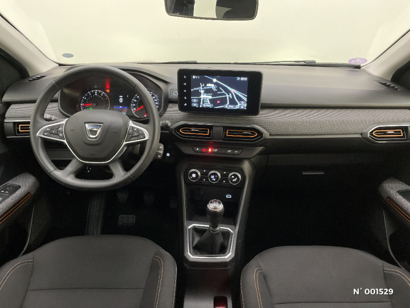 Signature lumineuse DACIA en Y à LED / Rappel de bouclage de ceintures / Plancher de coffre plat / Media display (écran 8'', réplication smartphone, 4 haut-parleurs, 1 port USB) / Système de freinage d'urgence autonome à des vitesses interurbaines 7-170km/h / Classe energetique C / Alternateur renforcé / Rétroviseurs extérieurs ton carrosserie / Peinture opaque / Clé 3 boutons / Console basse + rangement ouvert / Fonction éco-mode / Kit de gonflage / Cluster TFT / Enjoliveur 16'' Saria - Stepway / Harmonie intérieur / Sellerie Stepway avec surpiqures / Volant Soft Feel TEP / Airbag latéral avant : thorax + rideau / Feux arrières avec signature lumineuse Y / Système de freinage d'urgence autonome à des vitesses interurbaines 30-140km/h / Media display (écran 8'', réplication smartphone, 4 haut-parleurs, 1 port USB, 1 support téléphone)