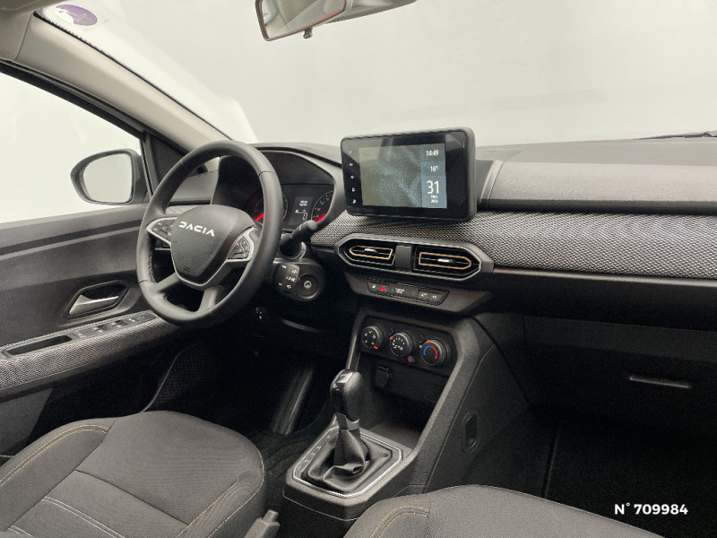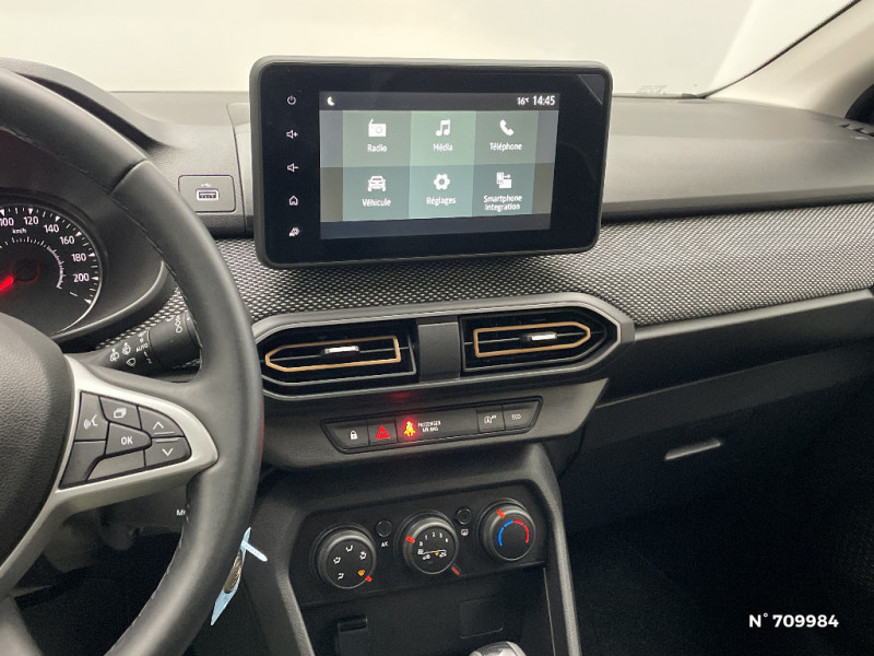 Volant Soft Feel TEP / Tableau de bord avec écran numérique 3,5'' et compteurs analogiques / Media Display (écran tactile 8'' sans navigation, radio, réplication smartphone USB, 4 haut-parleurs audiostreaming Bluetooth, satellite de commandes au volant, 1 prise USB-A et 1 prise USB-C) / Peinture opaque / Prédisposition Ethylotest / Sellerie Stepway avec surpiqures / Signature lumineuse DACIA en Y à LED / Système de freinage d'urgence avancé (pieton, deux-rorues et intersection) / Rétroviseurs extérieurs ton carrosserie / Rappel de bouclage de ceintures / Airbag latéral AV : thorax + rideau / Alerte franchissement de ligne et assistant maintien dans la voie / Boîte de vitesse Automate à fonction continue / Clé 3 boutons / Console basse + rangement ouvert / Eclairage du coffre / Enjoliveur 16'' ATARA DARK / ESP+ASR / Feux AR avec signature lumineuse Y / Fonction éco-mode / Kit de gonflage