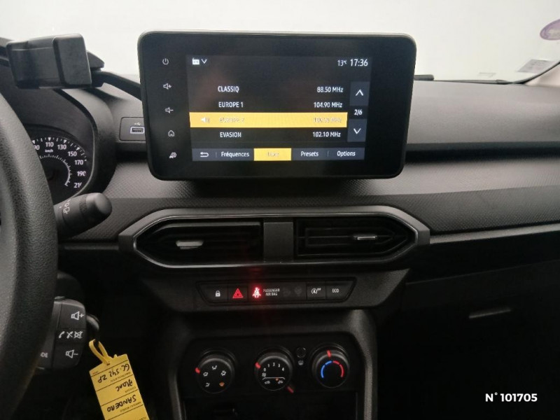 Media control (Streaming audio bluetooth avec support téléphone, 2 haut-parleurs, 1 USB) / Feux arrières avec signature lumineuse Y / Système de freinage d'urgence autonome à des vitesses interurbaines 30-140km/h / Signature lumineuse DACIA en Y à LED / Rappel de bouclage de ceintures / Enjoliveur 15'' Elma / Système de freinage d'urgence autonome à des vitesses interurbaines 7-170km/h / Volant mousse / Fonction éco-mode / Kit de gonflage / Roues tôle 15" / Chauffage avec recyclage d'air / Clé 3 boutons / Console basse + rangement ouvert / Cluster TFT / Harmonie intérieure / Sellerie essentiel / Airbag latéral avant : thorax + rideau