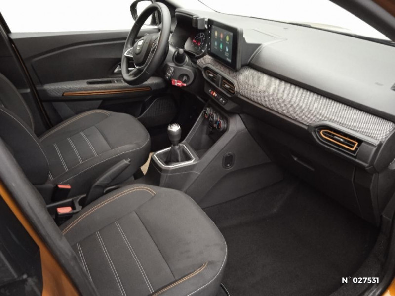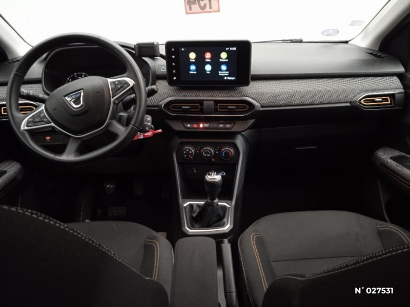 Clé 3 boutons / Console basse + rangement ouvert / Cluster TFT / Enjoliveur 16'' Saria - Stepway / Harmonie intérieur / Sellerie Stepway avec surpiqures / Volant Soft Feel TEP / Airbag latéral avant : thorax + rideau / Feux arrières avec signature lumineuse Y / Système de freinage d'urgence autonome à des vitesses interurbaines 30-140km/h / Media display (écran 8'', réplication smartphone, 4 haut-parleurs, 1 port USB, 1 support téléphone) / Signature lumineuse DACIA en Y à LED / Rappel de bouclage de ceintures / Plancher de coffre plat / Media display (écran 8'', réplication smartphone, 4 haut-parleurs, 1 port USB) / Système de freinage d'urgence autonome à des vitesses interurbaines 7-170km/h / Classe energetique C / Alerte d'oubli de bouclage des ceintures de sécurité / Fonction éco-mode / Kit de gonflage / Rétroviseurs extérieurs ton carrosserie / Peinture opaque