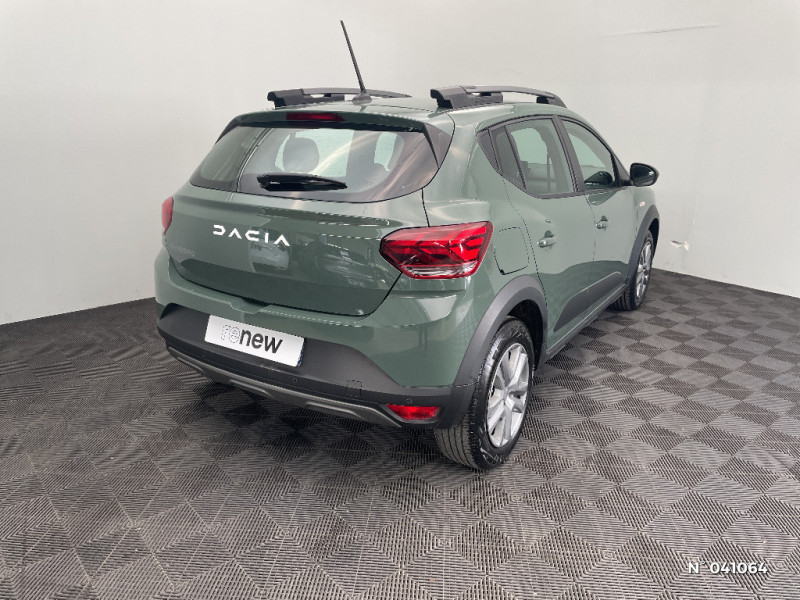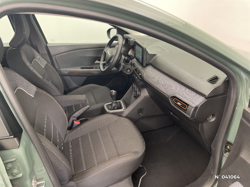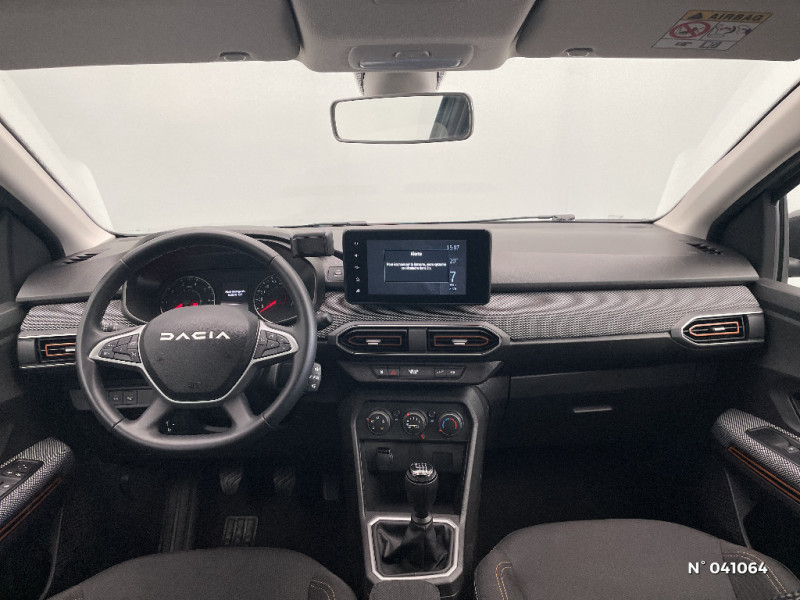 Clé 3 boutons / Console basse + rangement ouvert / Feux arrières avec signature lumineuse Y / Signature lumineuse DACIA en Y à LED / Rappel de bouclage de ceintures / Plancher de coffre plat / Media display (écran 8'', réplication smartphone, 4 haut-parleurs, 1 port USB) / Système de freinage d'urgence autonome à des vitesses interurbaines 7-170km/h / Nouvelle identité visuelle / Enjoliveur 16'' Saria - Stepway / Enjoliveur 16'' Saria / Cluster TFT / Sellerie Stepway avec surpiqures / Peinture opaque / Fonction éco-mode / Kit de gonflage / Volant Soft Feel TEP / Airbag latéral avant : thorax + rideau