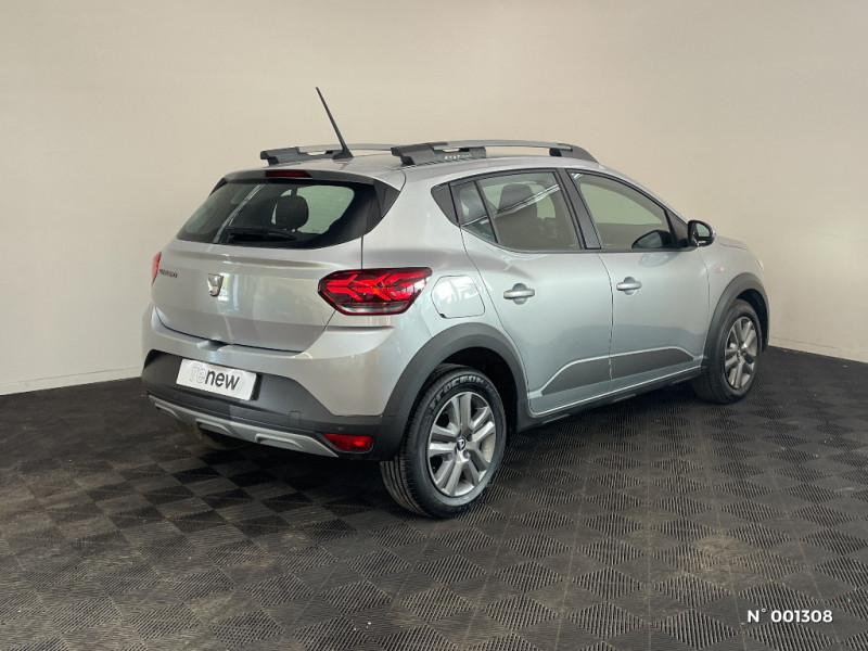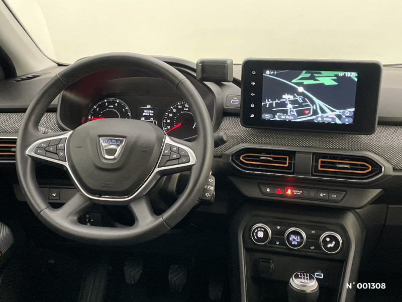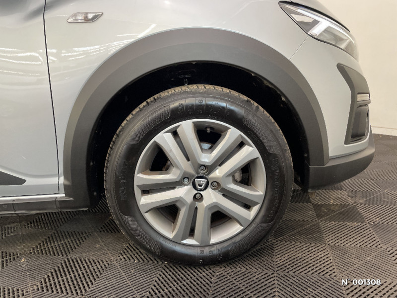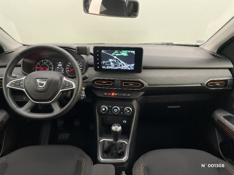Alerte d'oubli de bouclage des ceintures de sécurité / Kit de gonflage / Rétroviseurs extérieurs ton carrosserie / Clé 3 boutons / Console basse + rangement ouvert / Cluster TFT / Enjoliveur 16'' Saria - Stepway / Harmonie intérieur / Sellerie Stepway avec surpiqures / Volant Soft Feel TEP / Airbag latéral avant : thorax + rideau / Feux arrières avec signature lumineuse Y / Système de freinage d'urgence autonome à des vitesses interurbaines 30-140km/h / Media display (écran 8'', réplication smartphone, 4 haut-parleurs, 1 port USB, 1 support téléphone) / Signature lumineuse DACIA en Y à LED / Rappel de bouclage de ceintures / Plancher de coffre plat / Fonction éco-mode