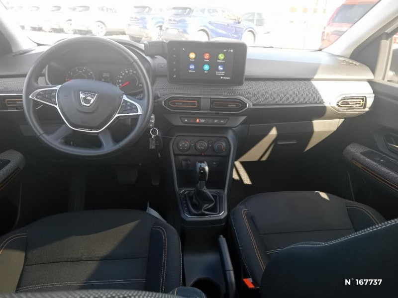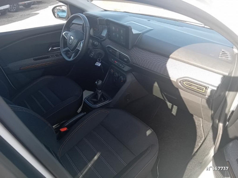 Enjoliveur 16'' Saria - Stepway / Harmonie intérieur / Sellerie Stepway avec surpiqures / Volant Soft Feel TEP / Airbag latéral avant : thorax + rideau / Feux arrières avec signature lumineuse Y / Signature lumineuse DACIA en Y à LED / Rappel de bouclage de ceintures / Plancher de coffre plat / Media display (écran 8'', réplication smartphone, 4 haut-parleurs, 1 port USB) / Système de freinage d'urgence autonome à des vitesses interurbaines 7-170km/h / Classe energetique C / Alternateur renforcé / Fonction éco-mode / Kit de gonflage / Rétroviseurs extérieurs ton carrosserie / Peinture opaque / Clé 3 boutons / Console basse + rangement ouvert / Cluster TFT