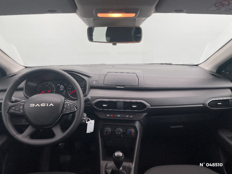 Tableau de bord avec écran numérique 3,5'' et compteurs analogiques / Enjoliveur 15'' Elma / Système de freinage d'urgence avancé (pieton, deux-rorues et intersection) / Prédisposition Ethylotest / Alerte franchissement de ligne et assistant maintien dans la voie / Volant mousse / Fonction éco-mode / Eclairage du coffre / Kit de gonflage / Lève-vitres AR manuels / Chauffage avec recyclage d'air / Clé 3 boutons / Console basse + rangement ouvert / Sellerie essentiel / Media control (Streaming audio bluetooth avec support téléphone, 2 haut-parleurs, 1 USB) / Airbag latéral avant : thorax + rideau / Feux arrières avec signature lumineuse Y / Signature lumineuse DACIA en Y à LED / Rappel de bouclage de ceintures / Nouvelle identité visuelle