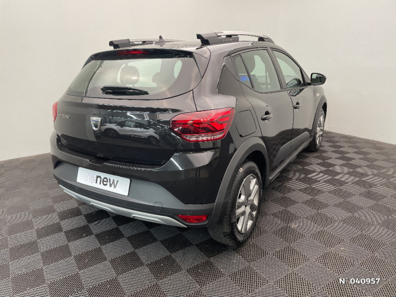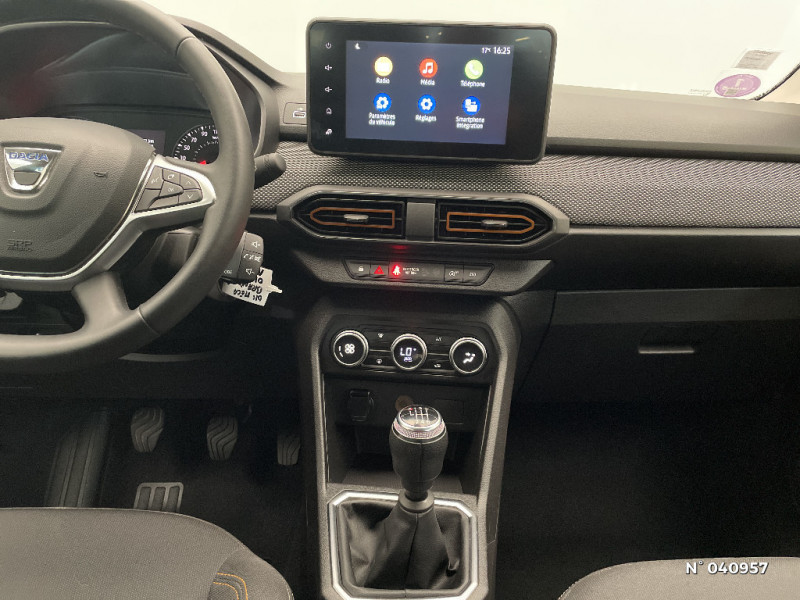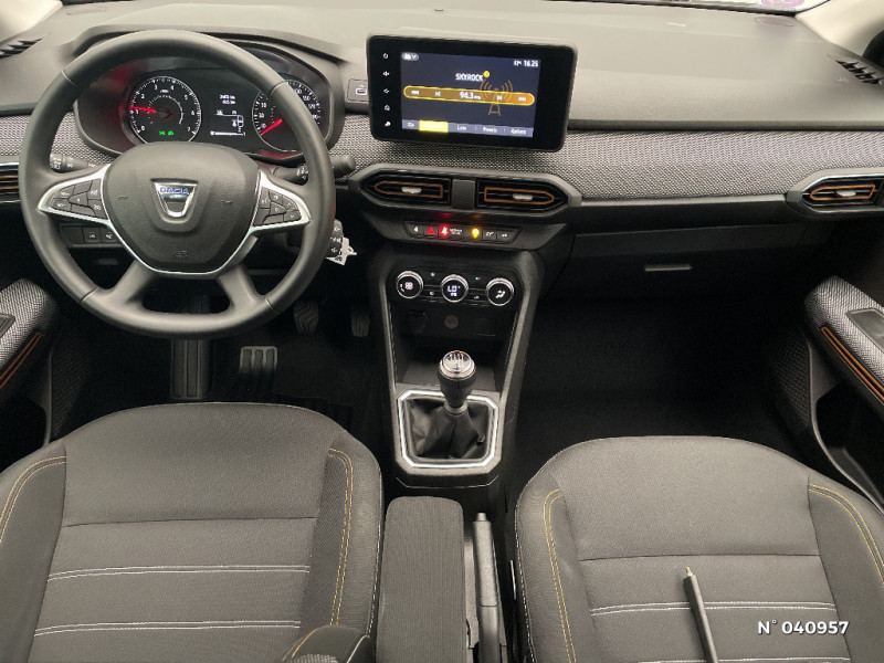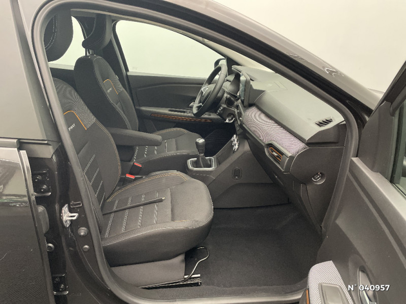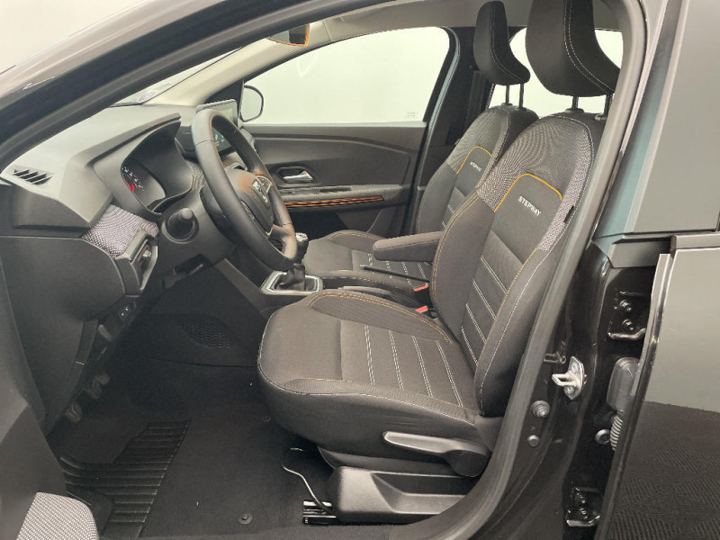 Volant Soft Feel TEP / Airbag latéral avant : thorax + rideau / Fonction éco-mode / Kit de gonflage / Rétroviseurs extérieurs ton carrosserie / Peinture opaque / Alerte d'oubli de bouclage des ceintures de sécurité / Clé 3 boutons / Console basse + rangement ouvert / Cluster TFT / Enjoliveur 16'' Saria - Stepway / Harmonie intérieur / Phares de jour LED avec signature lumineuse Y / Projecteurs Full LED avec signature lumineuse Y / Sellerie Stepway avec surpiqures / Rappel de bouclage de ceintures / Feux arrières avec signature lumineuse Y / Système de freinage d'urgence autonome à des vitesses interurbaines 30-140km/h / Media display (écran 8'', réplication smartphone, 4 haut-parleurs, 1 port USB, 1 support téléphone) / Signature lumineuse DACIA en Y à LED