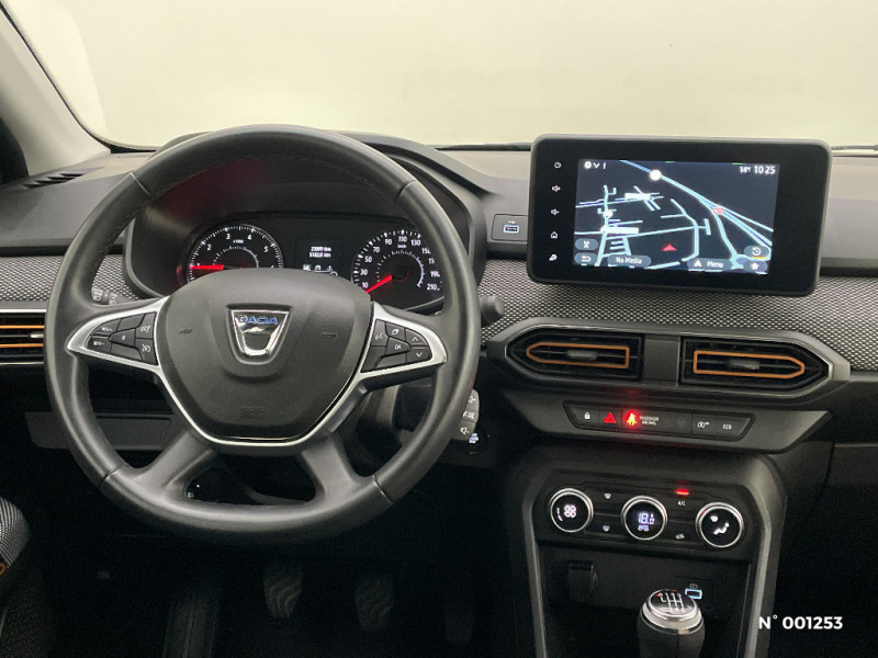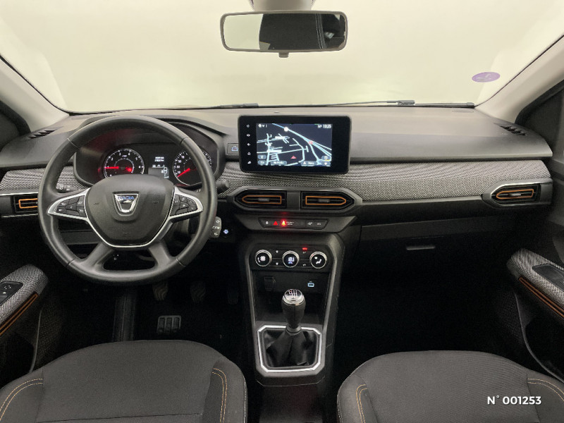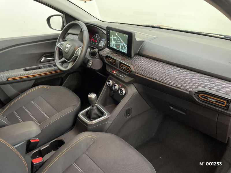 Harmonie intérieur / Sellerie Stepway avec surpiqures / Volant Soft Feel TEP / Airbag latéral avant : thorax + rideau / Feux arrières avec signature lumineuse Y / Système de freinage d'urgence autonome à des vitesses interurbaines 30-140km/h / Media display (écran 8'', réplication smartphone, 4 haut-parleurs, 1 port USB, 1 support téléphone) / Signature lumineuse DACIA en Y à LED / Rappel de bouclage de ceintures / Plancher de coffre plat / Media display (écran 8'', réplication smartphone, 4 haut-parleurs, 1 port USB) / Système de freinage d'urgence autonome à des vitesses interurbaines 7-170km/h / Classe energetique C / Alternateur renforcé / Kit de gonflage / Fonction éco-mode / Rétroviseurs extérieurs ton carrosserie / Peinture opaque / Clé 3 boutons / Console basse + rangement ouvert / Cluster TFT / Enjoliveur 16'' Saria - Stepway