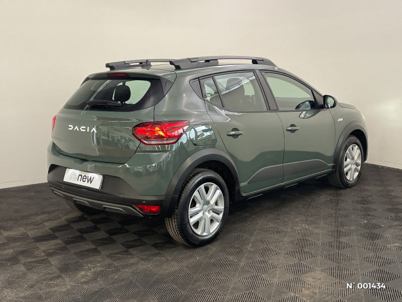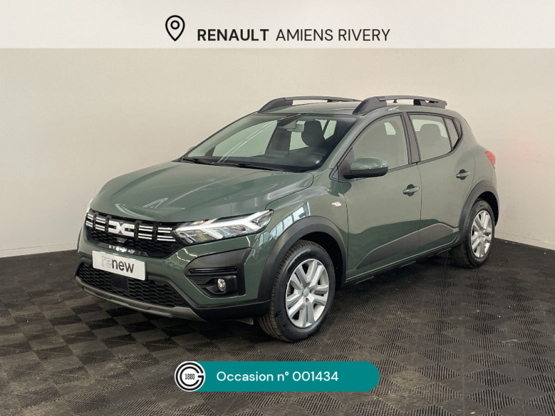Enjoliveur 16'' Saria - Stepway / Enjoliveur 16'' Saria / Tableau de bord avec écran numérique 3,5'' et compteurs analogiques / Clé 3 boutons / Console basse + rangement ouvert / Sellerie Stepway avec surpiqures / Volant Soft Feel TEP / Airbag latéral avant : thorax + rideau / Fonction éco-mode / Eclairage du coffre / Kit de gonflage / Rétroviseurs extérieurs ton carrosserie / Feux arrières avec signature lumineuse Y / Signature lumineuse DACIA en Y à LED / Rappel de bouclage de ceintures / Media display (écran 8'', réplication smartphone, 4 haut-parleurs, 1 port USB) / Système de freinage d'urgence autonome à des vitesses interurbaines 7-170km/h / Nouvelle identité visuelle