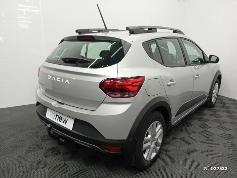 Clé 3 boutons / Console basse + rangement ouvert / Sellerie Stepway avec surpiqures / Volant Soft Feel TEP / Airbag latéral avant : thorax + rideau / Feux arrières avec signature lumineuse Y / Signature lumineuse DACIA en Y à LED / Rappel de bouclage de ceintures / Media display (écran 8'', réplication smartphone, 4 haut-parleurs, 1 port USB) / Système de freinage d'urgence autonome à des vitesses interurbaines 7-170km/h / Nouvelle identité visuelle / Enjoliveur 16'' Saria - Stepway / Enjoliveur 16'' Saria / Tableau de bord avec écran numérique 3,5'' et compteurs analogiques / Fonction éco-mode / Eclairage du coffre / Kit de gonflage / Rétroviseurs extérieurs ton carrosserie