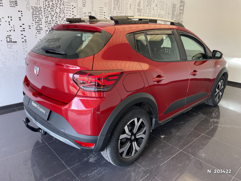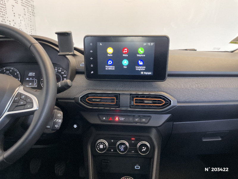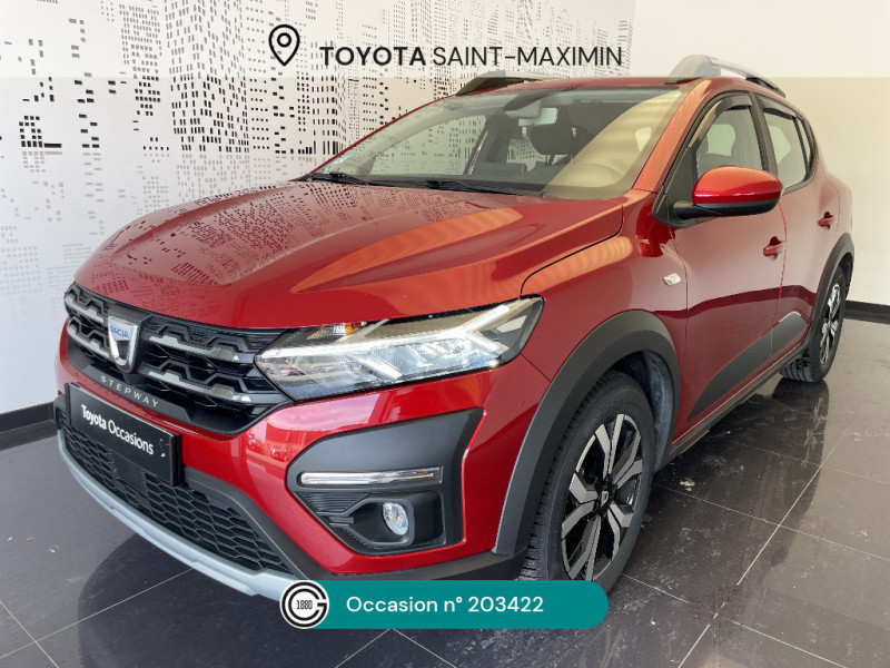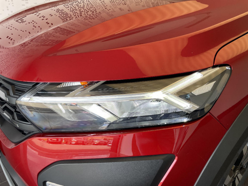 Enjoliveur 16'' Saria - Stepway / Feux AR avec signature lumineuse Y / Fonction éco-mode / Harmonie intérieure / Kit de gonflage / Media display (écran 8'', réplication smartphone, 4 haut-parleurs, 1 port USB, 1 support téléphone) / Plancher de coffre plat / Rappel de bouclage de ceintures / Rétroviseurs extérieurs ton carrosserie / Sellerie Stepway avec surpiqures / Signature lumineuse DACIA en Y à LED / Système de freinage d'urgence autonome à des vitesses interurbaines 30-140km/h / Volant Soft Feel TEP / Airbag latéral AV : thorax + rideau / Alerte d'oubli de bouclage des ceintures de sécurité / Clé 3 boutons / Cluster TFT / Console basse + rangement ouvert