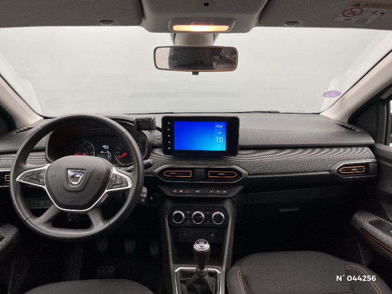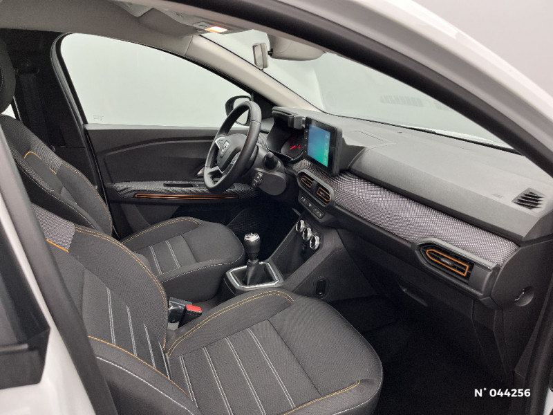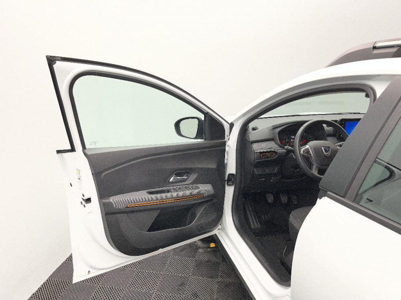 Sellerie Stepway avec surpiqures / Volant Soft Feel TEP / Airbag latéral avant : thorax + rideau / Feux arrières avec signature lumineuse Y / Système de freinage d'urgence autonome à des vitesses interurbaines 30-140km/h / Media display (écran 8'', réplication smartphone, 4 haut-parleurs, 1 port USB, 1 support téléphone) / Signature lumineuse DACIA en Y à LED / Fonction éco-mode / Kit de gonflage / Rétroviseurs extérieurs ton carrosserie / Peinture opaque / Clé 3 boutons / Console basse + rangement ouvert / Rappel de bouclage de ceintures / Plancher de coffre plat / Media display (écran 8'', réplication smartphone, 4 haut-parleurs, 1 port USB) / Système de freinage d'urgence autonome à des vitesses interurbaines 7-170km/h / Alternateur renforcé / Classes énergetiques B / Cluster TFT / Enjoliveur 16'' Saria - Stepway / Harmonie intérieur