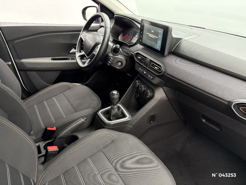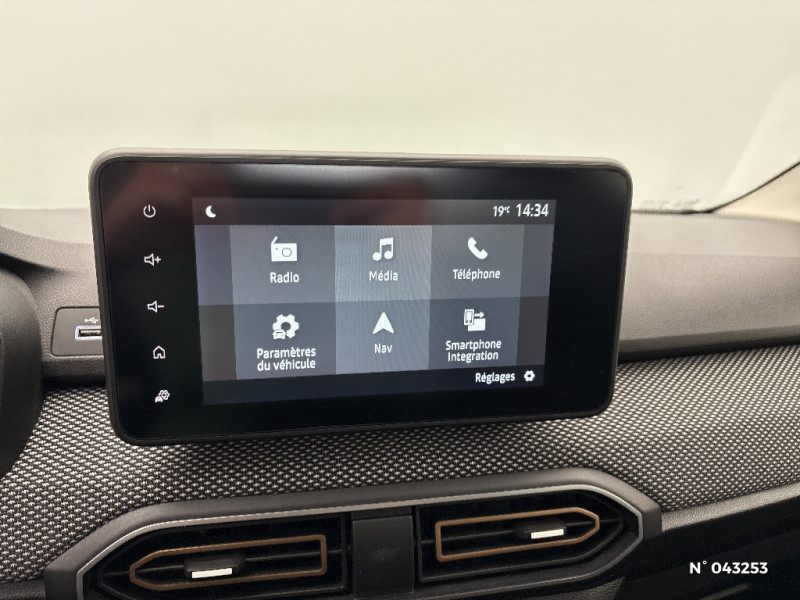 Prédisposition Ethylotest / Alerte franchissement de ligne et assistant maintien dans la voie / Enjoliveur 16'' ATARA / Enjoliveur 16'' ATARA DARK / Media Display (écran tactile 8'' sans navigation, radio, réplication smartphone USB, 4 haut-parleurs audiostreaming Bluetooth, satellite de commandes au volant, 1 prise USB-A et 1 prise USB-C) / Boîte de vitesse automatique / Boîte de vitesse manuelle 6 / Peinture opaque / Rappel de bouclage de ceintures / Tableau de bord avec écran numérique 3,5'' et compteurs analogiques / Clé 3 boutons / Console basse + rangement ouvert / Système de freinage d'urgence avancé (pieton, deux-rorues et intersection) / Airbag latéral avant : thorax + rideau / Feux arrières avec signature lumineuse Y / Eclairage du coffre / Kit de gonflage / Rétroviseurs extérieurs ton carrosserie / Sellerie Stepway avec surpiqures / Volant Soft Feel TEP / ESP+ASR / Fonction éco-mode / Signature lumineuse DACIA en Y à LED