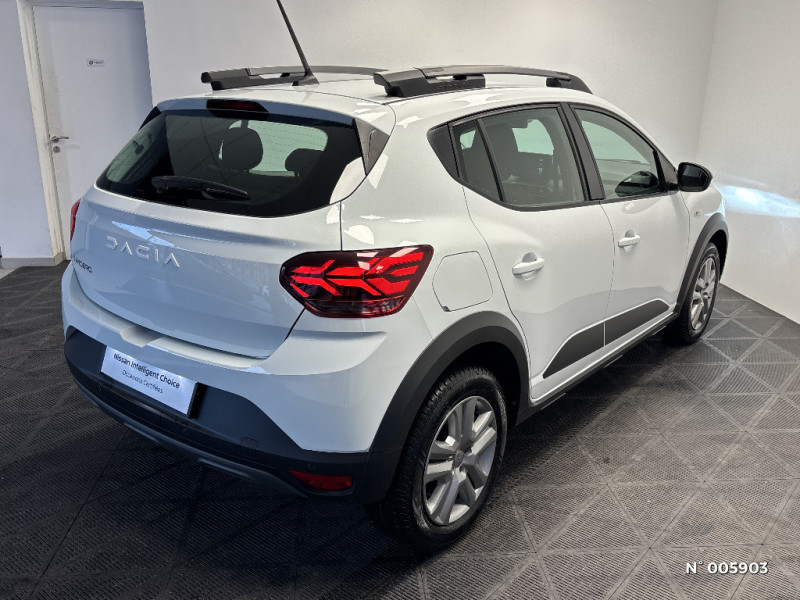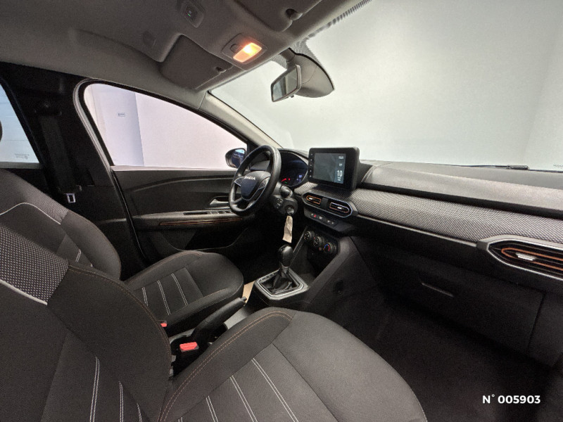 Peinture opaque / Rappel de bouclage de ceintures / Sellerie Stepway avec surpiqures / Signature lumineuse DACIA en Y à LED / Système de freinage d'urgence autonome à des vitesses interurbaines 7-170km/h / Volant Soft Feel TEP / Airbag latéral AV : thorax + rideau / Alternateur renforcé / Clé 3 boutons / Cluster TFT / Console basse + rangement ouvert / DAE SCAS / Enjoliveur 16'' Saria - Stepway / Evolution de gamme / Feux AR avec signature lumineuse Y / Fonction éco-mode / Kit de gonflage / Media display (écran 8'', réplication smartphone, 4 haut-parleurs, 1 port USB) / Nouvelle identité visuelle / Plancher de coffre plat
