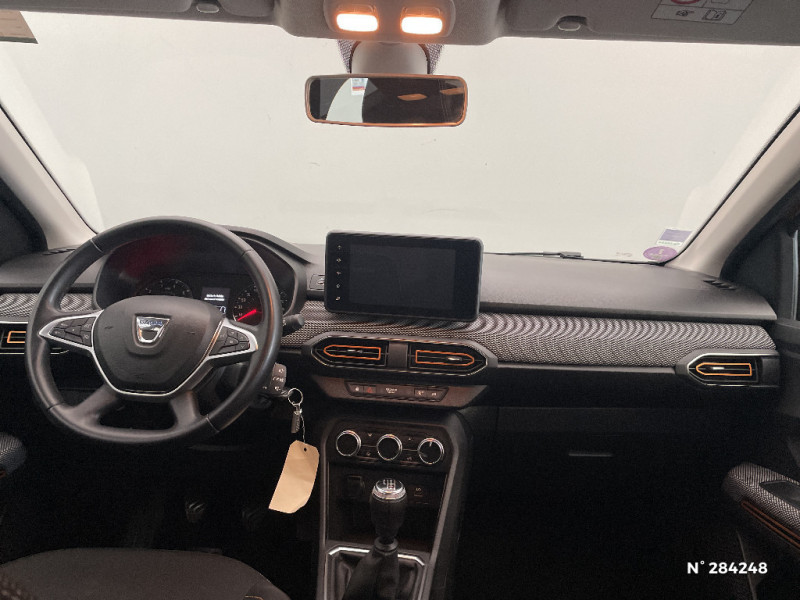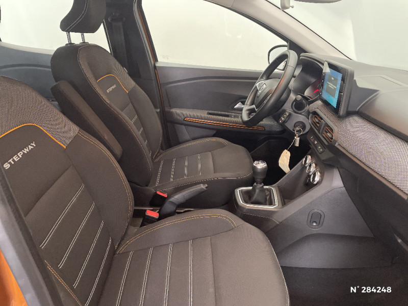 Fonction éco-mode / Kit de gonflage / Rétroviseurs extérieurs ton carrosserie / Alerte d'oubli de bouclage des ceintures de sécurité / Clé 3 boutons / Console basse + rangement ouvert / Cluster TFT / Enjoliveur 16'' Saria - Stepway / Harmonie intérieur / Sellerie Stepway avec surpiqures / Volant Soft Feel TEP / Airbag latéral avant : thorax + rideau / Feux arrières avec signature lumineuse Y / Système de freinage d'urgence autonome à des vitesses interurbaines 30-140km/h / Media display (écran 8'', réplication smartphone, 4 haut-parleurs, 1 port USB, 1 support téléphone) / Signature lumineuse DACIA en Y à LED / Rappel de bouclage de ceintures / Plancher de coffre plat / Media display (écran 8'', réplication smartphone, 4 haut-parleurs, 1 port USB) / Système de freinage d'urgence autonome à des vitesses interurbaines 7-170km/h
