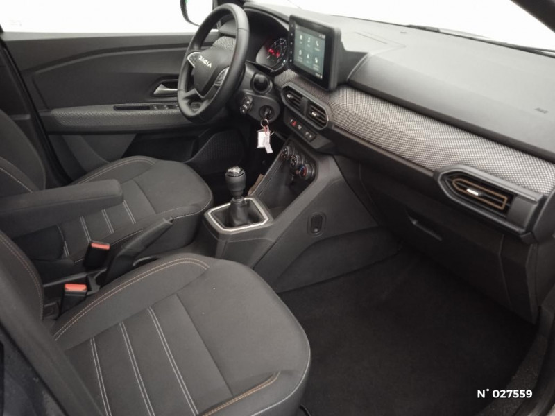 Système de freinage d'urgence avancé (pieton, deux-rorues et intersection) / ESP+ASR / Fonction éco-mode / Eclairage du coffre / Kit de gonflage / Rétroviseurs extérieurs ton carrosserie / Clé 3 boutons / Console basse + rangement ouvert / Sellerie Stepway avec surpiqures / Volant Soft Feel TEP / Airbag latéral avant : thorax + rideau / Feux arrières avec signature lumineuse Y / Signature lumineuse DACIA en Y à LED / Rappel de bouclage de ceintures / Tableau de bord avec écran numérique 3,5'' et compteurs analogiques / Alerte franchissement de ligne et assistant maintien dans la voie / Enjoliveur 16'' ATARA / Media Display (écran tactile 8'' sans navigation, radio, réplication smartphone USB, 4 haut-parleurs audiostreaming Bluetooth, satellite de commandes au volant, 1 prise USB-A et 1 prise USB-C) / Boîte de vitesse manuelle 6 / Prédisposition Ethylotest