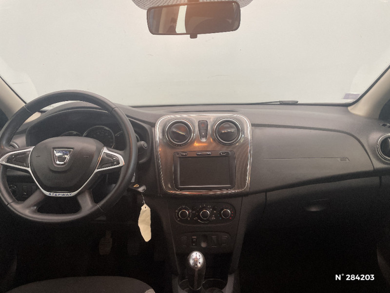 Equipement GPL / Poignées de portes intérieures chrome satiné / Cartographie France / Stop & Start / Eclairage du coffre / Indicateur de changement de vitesse / Harmonie carbone foncé / Alerte non bouclage de ceintures AV / Poignées de portes extérieures noires / Kit de gonflage / Media Nav Evolution (écran 7" avec navigation, réplication smartphone, USB, bluetooth, DAB) / Lève-vitres AR manuels / Peinture Blanc Glacier / Jantes design 16'' Bayadere Dark Metal / Sellerie Stepway