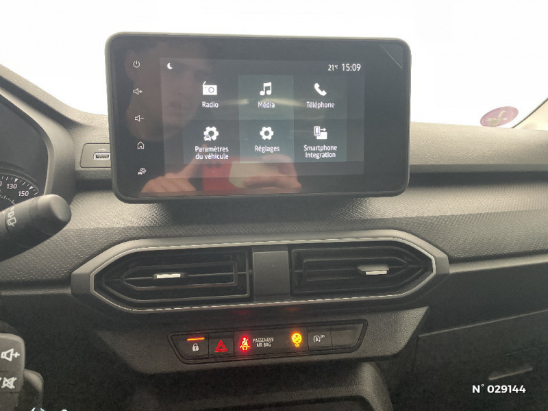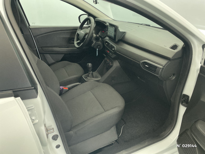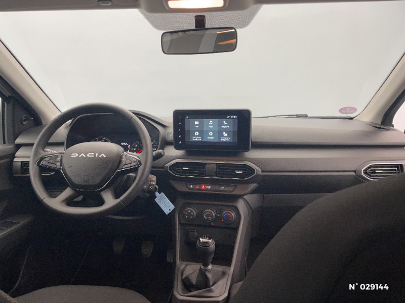 Volant mousse / Eclairage du coffre / Kit de gonflage / Lève-vitres AR manuels / Chauffage avec recyclage d'air / Clé 3 boutons / Console basse + rangement ouvert / Sellerie essentiel / Media control (Streaming audio bluetooth avec support téléphone, 2 haut-parleurs, 1 USB) / Airbag latéral avant : thorax + rideau / Feux arrières avec signature lumineuse Y / Signature lumineuse DACIA en Y à LED / Rappel de bouclage de ceintures / Système de freinage d'urgence autonome à des vitesses interurbaines 7-170km/h / Nouvelle identité visuelle / Enjoliveur 15'' Elma / Tableau de bord avec écran numérique 3,5'' et compteurs analogiques