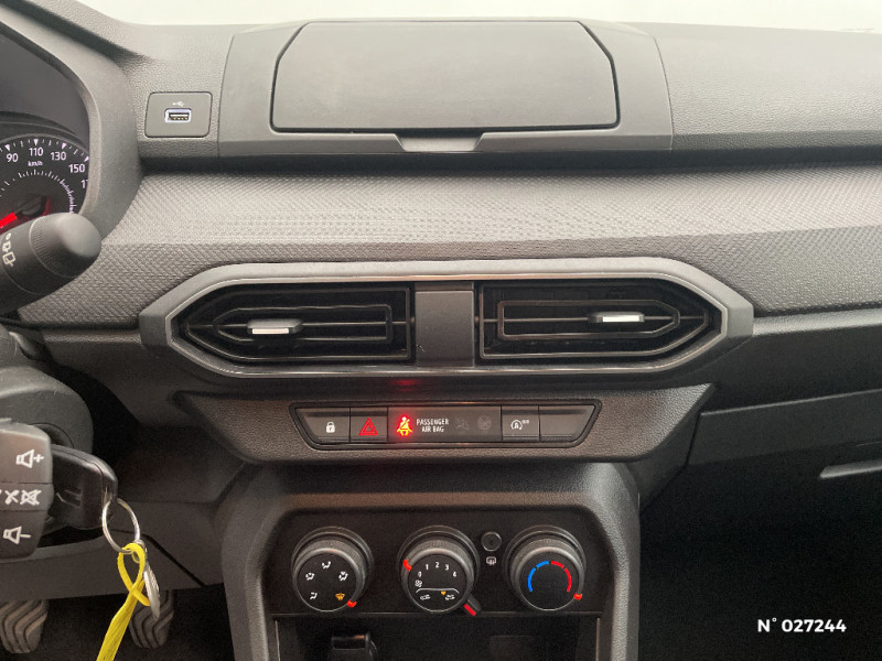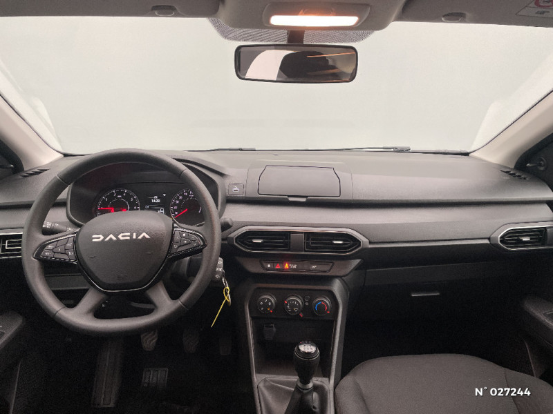 Kit de gonflage / Lève-vitres AR manuels / Chauffage avec recyclage d'air / Clé 3 boutons / Console basse + rangement ouvert / Sellerie essentiel / Media control (Streaming audio bluetooth avec support téléphone, 2 haut-parleurs, 1 USB) / Airbag latéral avant : thorax + rideau / Feux arrières avec signature lumineuse Y / Signature lumineuse DACIA en Y à LED / Rappel de bouclage de ceintures / Système de freinage d'urgence autonome à des vitesses interurbaines 7-170km/h / Nouvelle identité visuelle / Enjoliveur 15'' Elma / Tableau de bord avec écran numérique 3,5'' et compteurs analogiques / Volant mousse / Eclairage du coffre