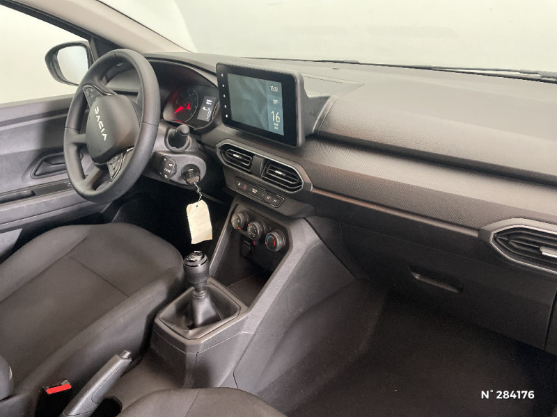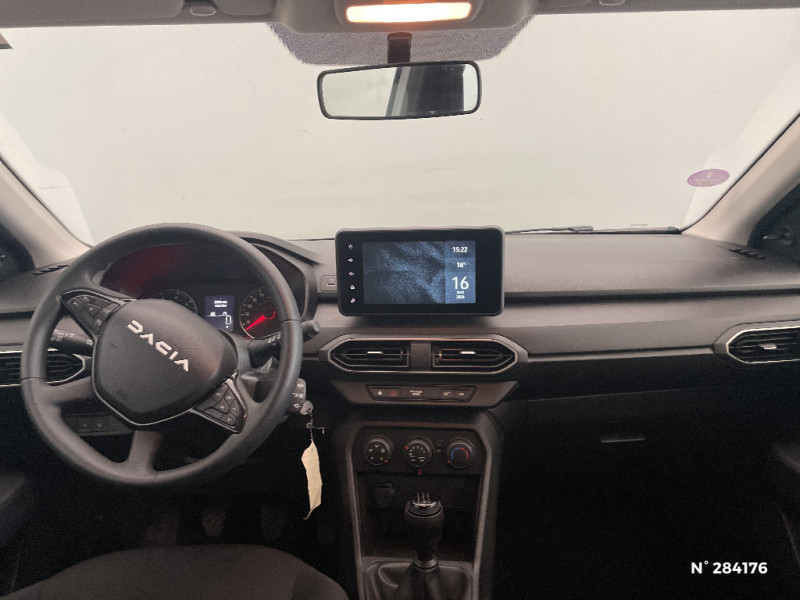 Volant mousse / Fonction éco-mode / Eclairage du coffre / Kit de gonflage / Lève-vitres AR manuels / Chauffage avec recyclage d'air / Clé 3 boutons / Console basse + rangement ouvert / Sellerie essentiel / Media control (Streaming audio bluetooth avec support téléphone, 2 haut-parleurs, 1 USB) / Airbag latéral avant : thorax + rideau / Feux arrières avec signature lumineuse Y / Signature lumineuse DACIA en Y à LED / Rappel de bouclage de ceintures / Système de freinage d'urgence autonome à des vitesses interurbaines 7-170km/h / Nouvelle identité visuelle / Enjoliveur 15'' Elma / Roues tôle 15" / Tableau de bord avec écran numérique 3,5'' et compteurs analogiques