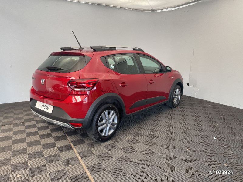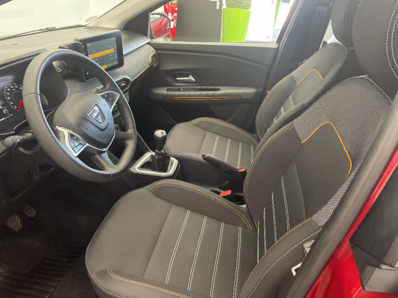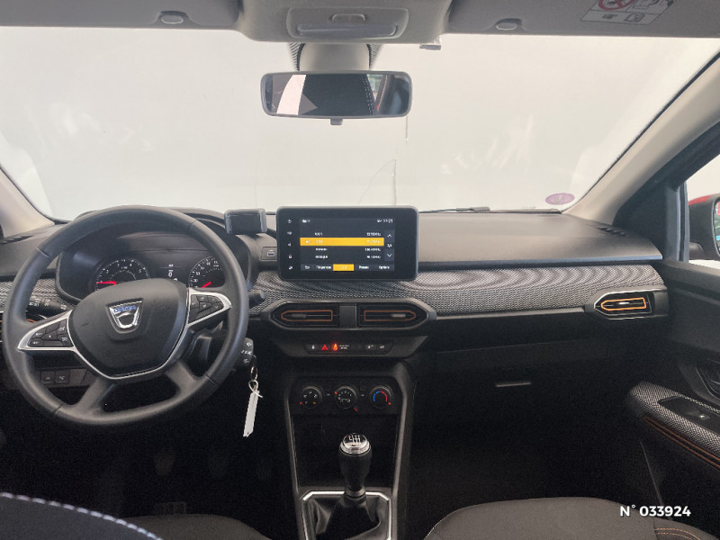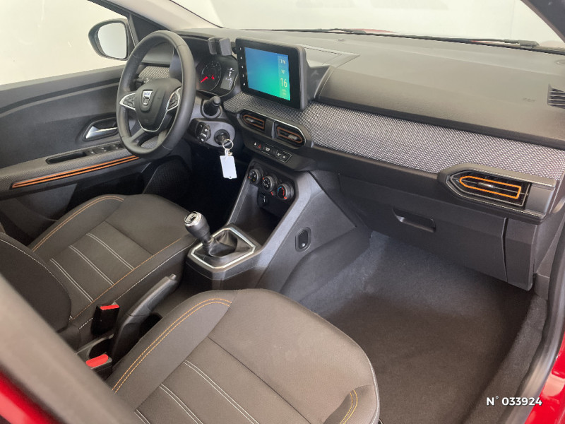 Fonction éco-mode / Console basse + rangement ouvert / Cluster TFT / Enjoliveur 16'' Saria - Stepway / Harmonie intérieur / Sellerie Stepway avec surpiqures / Volant Soft Feel TEP / Feux arrières avec signature lumineuse Y / Signature lumineuse DACIA en Y à LED / Rappel de bouclage de ceintures / Plancher de coffre plat / Media display (écran 8'', réplication smartphone, 4 haut-parleurs, 1 port USB) / Système de freinage d'urgence autonome à des vitesses interurbaines 7-170km/h / Alternateur renforcé / Classes énergetiques B / Airbag latéral avant : thorax + rideau / Kit de gonflage / Rétroviseurs extérieurs ton carrosserie / Peinture opaque / Clé 3 boutons
