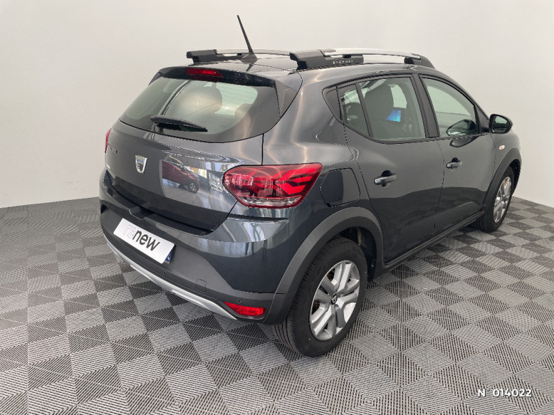 Media display (écran 8'', réplication smartphone, 4 haut-parleurs, 1 port USB, 1 support téléphone) / Rappel de bouclage de ceintures / Clé 3 boutons / Console basse + rangement ouvert / Cluster TFT / Enjoliveur 16'' Saria - Stepway / Harmonie intérieur / Phares de jour LED avec signature lumineuse Y / Projecteurs Full LED avec signature lumineuse Y / Sellerie Stepway avec surpiqures / Volant Soft Feel TEP / Airbag latéral avant : thorax + rideau / Feux arrières avec signature lumineuse Y / Système de freinage d'urgence autonome à des vitesses interurbaines 30-140km/h / Fonction éco-mode / Kit de gonflage / Rétroviseurs extérieurs ton carrosserie / Peinture opaque / Alerte d'oubli de bouclage des ceintures de sécurité / Signature lumineuse DACIA en Y à LED
