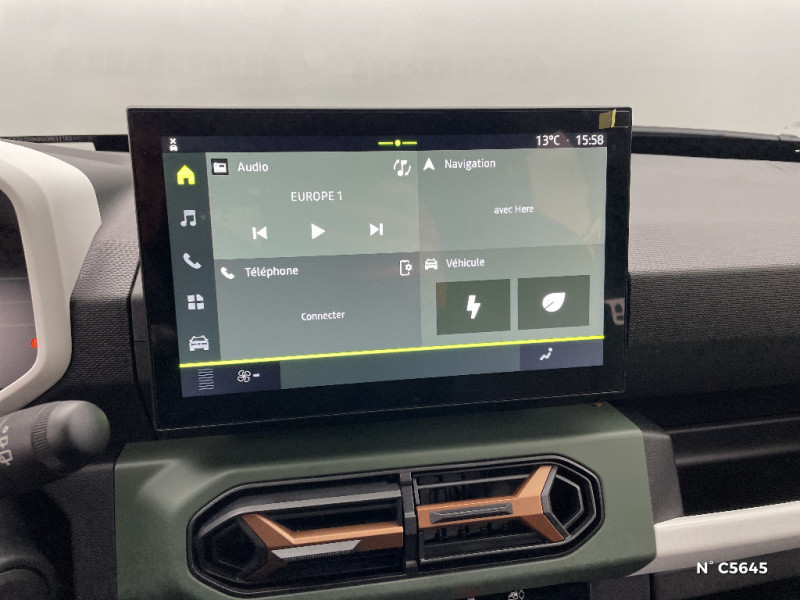 AEBS Urbain + City : Système de freinage d'urgence avancé (piéton, deux-roues et intersection) / Alerte oubli de bouclage de ceintures / Boîte de vitesse Automate à fonction continue / Câble domestique Mode 2 (10A, 5m) / Charge bi-directionnelle V2L (vehicle to load) / Combiné d'instrumentation numérique 7'' / Enjoliveur 15" DANUBE / Essuie-lunette AR / Fonction éco-mode / Kit de gonflage / Media Nav Live (écran 10,1'', navigation avec trafic en temps réel, services connectés, 2 USB-C) / My Safety Switch (bouton de déconnexion des aides à la conduite) / Peinture opaque / Prédisposition Ethylotest / Sellerie mixte TEP/Tissu spécifique avec surpiqûres Brun Cuivré et embossage DC / Stripping latéral / Système de contrôle de traction (TCS) / Aide au mantien de voie