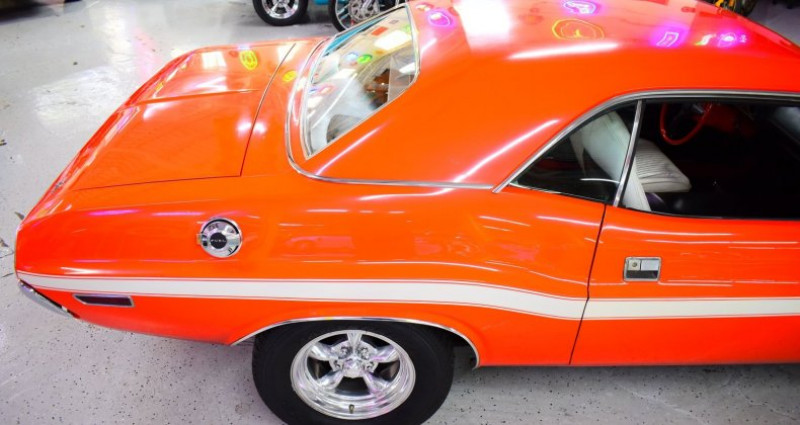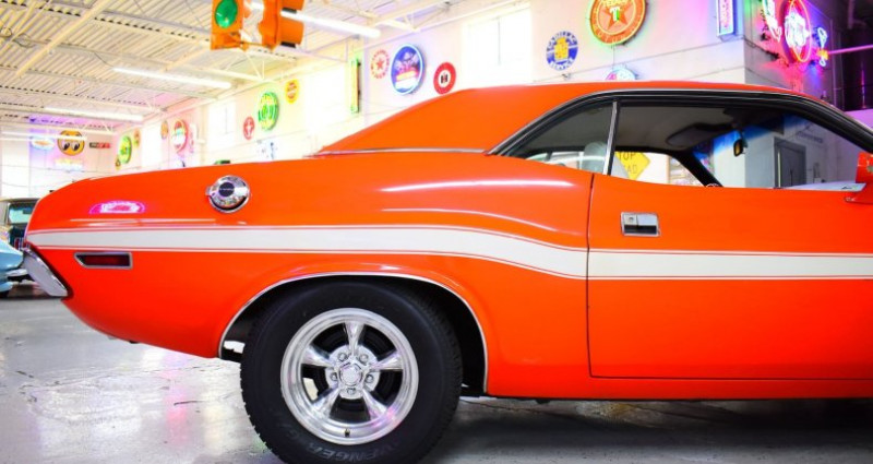 Le modèle offert est un Dodge Challenger R/T de 1970, véritable R/T et non une réplique. Il est peint en Orange Hugger, couleur inhabituelle qui lui confère une allure marquante. Il est équipé de roues American Racing Torque Thrust recouvertes de pneumatiques Cooper Cobra, offrant un aspect de véhicule de musculation classique. L'habitacle présente des sièges de cuir blanc en forme de tonneau et un tableau de bord et une console de bord d'origine bien conservés. Une unité radio moderne d'inspiration rétro complète l'ambiance intérieure. Sous le capot se trouve un moteur V8 de 383ci alimenté par une boîte automatique, livrant une performance fiable. L'équipement comprend un freinage et un volant à assiste et un climatisation original fonctionnel. Le véhicule est en bon état de fonctionnement et est maintenu à un niveau élevé. Il s'agit d'un véhicule de conduite quotidien ou de divertissement, idéal pour des promenades ou des événements d'exposition. Les peintures restent en bon état et le corps et la structure sont solides. Il s'agit d'un exemple exceptionnel de musculation Mopar prêt à circuler.. Ce descriptif est basé sur les éléments communiqués par le propriétaire avec un traitement assisté. Merci pour votre indulgence en cas de formulation perfectible. Provenance : Michigan. Disponibilité : 7 semaines, clés en main. 52 500 € tout compris (importation, taxes, procédure d'immatriculation). Annonce publiée le 04/10/2025