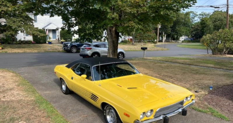 Informations fournies par le vendeur : 1973 Dodge Challenger, Top Banana yellow, overbored 340ci V8, four-speed manual transmission, Rallye-style equipment, Edelbrock intake manifold, Edelbrock carburetor, Hooker headers, black vinyl top, black vinyl upholstery, black vinyl roof, quad headlights, dual side mirrors, body-color fuel cap, quad exhaust outlets, chrome bumpers with overriders, Rallye 15? wheels, Dunlop Radial G/T Qualifier tires, power-assisted brakes, power steering, Hurst pistol-grip shifter, Blaupunkt cassette stereo, 150-mph speedometer, 7k-rpm tachometer, auxiliary gauges, approximately 2, 300 miles under current ownership, replacement 340ci V8 rebuilt and bored .030? over, engine rebuilt by Danbury Competition Engines, Sure-Grip limited-slip differential, chassis number 318ci V8 originally.. Provenance : Connecticut. Disponibilité : environ 7 semaines, clés en main. 50 000 € tout compris (importation, taxes, procédure d'immatriculation). Nous représentons les acheteurs sur le marché nord-américain et sécurisons chaque étape du processus, de la sélection à la mise en circulation. Annonce publiée le 21/11/2025