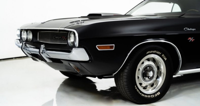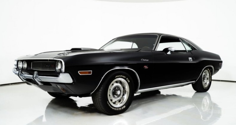 Black Dodge Challenger 440 C.I. Six Pack V8 • Stock #: CC386158 • Exterior Color: Black • Interior Color: Black • Body Type: Coupe • Transmission: 4-Speed Manual • Engine: 440 C.I. Six Pack V8 • Mileage: 89, 109 • Vehicle Original VIN : JS23V0B308695 • Finished in correct Black paint with a White bumblebee stripe • Black bucket seat interior with factory leather, center console, pistol-grip shifter, rallye gauges with tachometer and clock • Power steering, power disc brakes, dual racing mirrors, air conditioning • Riding on 15-inch rally wheels wrapped in BF Goodrich radials • Comes with original broadcast sheet and David Wise inspection report • Registered as 1 of 1 in the Mopar Registry. Provenance : Missouri. Disponibilité : environ 7 semaines, clés en main. 148 500 € tout compris (importation, taxes, procédure d'immatriculation). Annonce publiée le 28/11/2025