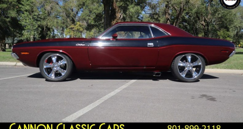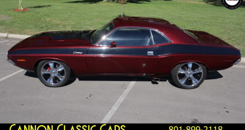 1971 Dodge Challenger, Maroon exterior, Black interior, 440Cui Mopar V8, TorqueFlite A727 3 Speed Automatic, Demon 4 Barrel Carburetor, Aluminum Intake Manifold, Serpentine Belt Conversion, Working Vintage Air A/C, Custom Paint, 1970 Challenger Front and Rear Grille/Lighting, Reupholstered Interior, Retrosound Radio with Custom Speakers, Amps, and Subwoofers with Bluetooth, Electronic Valved Exhaust with Side-pipe cutout, Aluminum Radiator with E-Fan, Chrome American Racing Wheels. Provenance : Utah. Disponibilité : environ 7 semaines, clés en main. 59 500 € tout compris (importation, taxes, procédure d'immatriculation). Annonce publiée le 29/11/2025