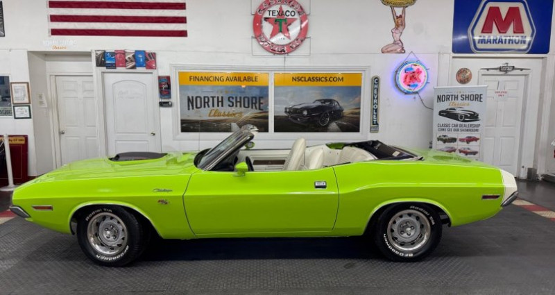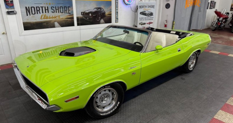 - Marque : Dodge - Modèle : Challenger - Couleur extérieure : Sub-Lime Green - Couleur intérieure : Blanc - Transmission : Boîte de vitesses à 4 rapports manuelle - Moteur : 426 - Kilométrage : 67 889 miles - Stock : 70436KFCV - Vendeur spécialisé : North Shore Classics - Site web du vendeur : [www.nsclassics.com](http://www.nsclassics.com). Provenance : Illinois. Disponibilité : environ 7 semaines, clés en main. 123 000 € tout compris (importation, taxes, procédure d'immatriculation). Annonce publiée le 08/12/2025