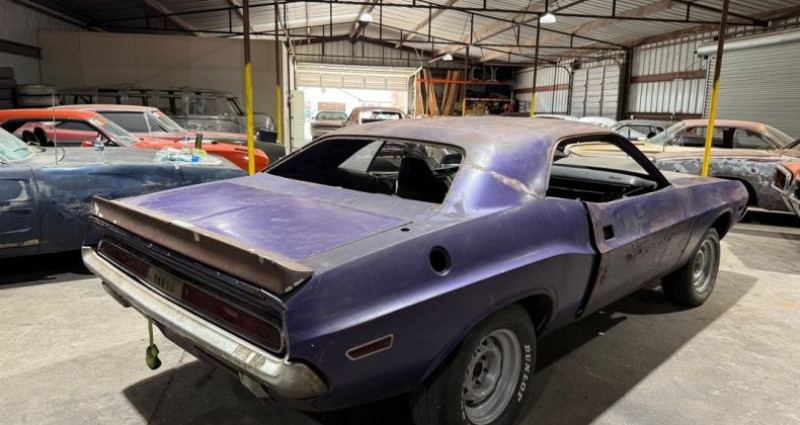 - Marque : Dodge - Modèle : Challenger TA - Année : 1970 - Numéro d'inventaire : 5575 - Couleur extérieure : Purple (FC7 Plum Crazy) - Couleur intérieure : Noir - Boîte de vitesses : 3 vitesses automatique - Moteur : 340 6 pack - Kilométrage : 0 - Équipements : Sièges de sport, console, tableau de bord rallye, radio AM/FM à 3 haut-parleurs, capot et spoiler OEM originaux, intake, carburateurs et capot d'air originaux, plafond de coffre solide, majorité de la coque intérieure, radio AM/FM original, roue de secours et bouteille d'inflation présents, tous les panneaux de verre sauf le pare-brise.. Provenance : Texas. Disponibilité : environ 7 semaines, clés en main. 50 000 € tout compris (importation, taxes, procédure d'immatriculation). Annonce publiée le 23/12/2025