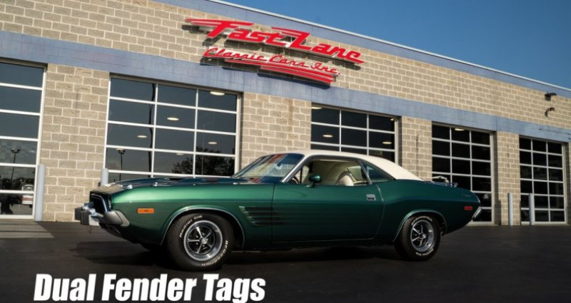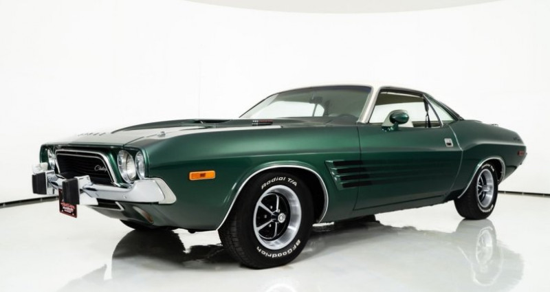 - Marque : Dodge - Modèle : Challenger Rallye - Année : 1974 - Couleur extérieure : Sherwood Green - Couleur intérieure : Blanc - Type de carrosserie : Hardtop - Transmission : 3 vitesses automatique - Moteur : 360 C.I. V8 - Boîte de vitesses arrière : 8¾ avec 3.55:1 Sure Grip - Kilométrage : 49 745 miles (non converti). Provenance : Missouri. Disponibilité : environ 7 semaines, clés en main. 59 000 € tout compris (importation, taxes, procédure d'immatriculation). Annonce publiée le 27/12/2025