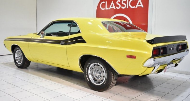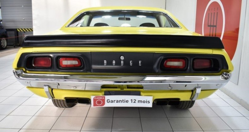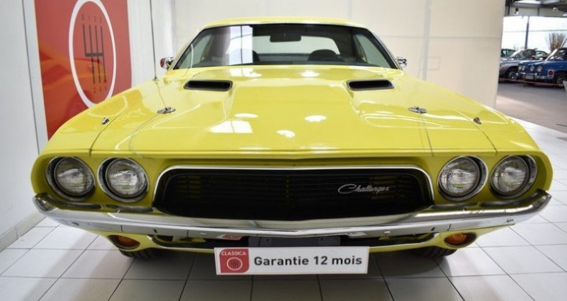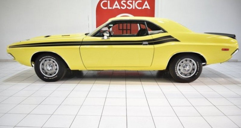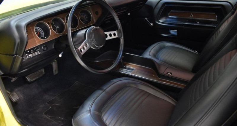 CONDUITE : à gauche CARTE GRISE : Collection NB PLACES : 4 NB CYL. : 8 en V PNEUMATIQUES : Usure Av 30% + Ar 40% * GARANTIE 12 MOIS incluse * REPRISES et LIVRAISON possibles * Frais de mise à la route (option) : 690 EUR. TTC (Batterie neuve, Révision (vidange moteur + filtre), 1/4 de carburant, Lavage carosserie + lustrage, nettoyage et aspiration intérieure) * Service « carte grise » et « carte grise collection » (dossier FFVE inclus) en option DODGE Challenger (1970 - 1974) 165.437 ex. produits 1.293 km / 804 miles Carte Grise Française 4 places V8 340 CI 5.600cm3 Version boite automatique ATF 3 rapports Allumage électronique MOPAR Carburateur 4 corps EDELBROCK Pipe admission EDELBROCK Caches culbuteurs MOPAR PERFORMANCE Filtre à air MOPAR Performance Faisceau d'allumage silicone TAYLOR Collecteur et ligne d'échappement inox Double sortie d'échappement Bouchon d'essence chromé Direction assistée Vitres teintées coloris « Green » Pare-brise teinté / dégradé coloris « Blue » Rétroviseurs chromés Hood quick release Becquet de coffre arrière Striping coloris « Black » 4 jantes d'origine en 14'' 4 cerclages chromés 4 pneumatiques BF GOODRICH Freins à disques percés et rainurés à l'avant Flexible de frein type aviation Sellerie en simili cuir « Black » Contre portes en simili cuir « Black » Tableau de bord en simili cuir « Black » Casquette de tableau de bord en PVC « Black » Instrumentation de bord d'origine Console centrale en PVC Volant 2 branches en PVC Levier de vitesse en PVC Radio CD KENWOOD Ciel de toit en simili cuir « Black » Ceintures de sécurité avant + arrière 2 points type « aviation » Moquettes coloris « Black » Roue de secours Cric Historique du modèle : Apres le succès inatendu de la FORD Mustang auquel personne ne croyait en 1964, la concurence réagit et se positionne sur ce nouveau segment très prometeur des Pony Cars. En 1970 DODGE présente la Challenger, un muscle car issu de la Coronet et destiné à concurencer la PONTIAC Firebird, la CHEVROLET Camaro et la MERCURY Cougar. Desinée par Carl Cameron également père de la DODGE Charger 1966, la Challenger affiche un empatement et des dimmension supérieures au standard de la catrégorie afin de viser le haut de gamme du segment Pony- Cars. Sa ligne à la fois élegante, classique et agressive lui permettra de rencontrer un vrai succès commercial et fera de la Challenger une icone de la culture automobile Américaine. Carrosserie / Extérieur : Le modèle présenté ici est une DODGE Challenger de Janvier 1972 dans son coloris « Lemon Yellow » d'époque. La carrosserie a été restaurée il y a quelques années et à cette occasion, la caisse a reçu une peinture neuve complète. Après un lustrage pro réalisé à l'orbitale par notre atelier, nous avons noté un petit défaut sous peinture sur le contour de la lunette arrière gauche. Le capot avant est équipé d'attaches rapides type Drag Race Hood quick release afin de souligner le coté muscle car de cette DODGE Challenger. Les pare chocs chromés sont parfaitement positionnés et en bon état, sans traces de choc ni oxydation. Les Striping coloris « Black » sont en excellent état. Les vitres teintées et le pare-brise dégradé coloris « Blue » sont en bon état. Nous avons relevé un laminage sur l'arête de vitre conducteur. Les 4 jantes tôle en 14'' et leurs cerclages chromés sont en bon état. Nous avons relevé de très légères oxydations sur les caches moyeux. Ces dernières sont chaussées de 4 pneumatiques BF GOODRICH affichant une usure de 30% à l'avant et 40 % à l'arrière. Cet exemplaire a conservé sa roue de secours et son cric d'origine. Parmi les équipements et options carrosserie intéressants dont ce modèle est doté, nous avons relevé : Les vitres teintées, le pare-brise teinté dégradé « Blue », le becquet de coffre ainsi que la paire de Hood quick release. Habitacle : L'intérieur a conservé sa configuration d'origine et apparaît en bel état de présentation. Les sièges avant en simili-cuir « Black » sont en excellent état. La banquette arrière en simili-cuir « Black » est en très bon état. Les contre portes en simili cuir « Black » sont également en bon état, sans trace d'usure ni distension. Les inserts des contre portes imitation bois d'origine sont en bon état. Le ciel de toit en simili cuir « Black » est également en très bon état. Le tableau de bord « Black » est en excellent état, sans traces de décoloration, fissures ou cassures. L'Instrumentation de bord d'origine est parfaitement fonctionnelle à l'exception de l'horloge, du compteur journalier et de l'éclairage du tableau de bord. Cet exemplaire est équipé de l'option direction assistée en monte origine usine. Le volant 2 branches PVC présente une patine d'usage. La radio cd KENWOOD est parfaitement fonctionnelle. Cet exemplaire est équipé de ceintures de sécurité type « aviation » à l'avant ainsi qu'à l'arrière. Les moquettes coloris « Black » sont en très bon état d'origine, sans traces d'usure ni décolorations. Parmi les équipements et options habitacle intéressantes dont cet exemplaire est doté, nous avons relevé : La direction assistée, la radio cd KENWOOD, les de ceintures de sécurité type « aviation » à l'avant ainsi qu'à l'arrière. Châssis : La mise sur le pont confirme une caisse saine, sans trace de corrosion structurelle apparente. Les fondamentaux : bas de caisse, planchers, fond de coffre, passages de roue et longerons sont en bon état. Réserve d'usage : par principe, nous ne pouvons garantir la perfection des alignements au-delà de leur bon état visuel et fonctionnel validé lors de l'essai sur route et de la mise sur pont. Lors de l'essai dynamique, nous n'avons relevé aucun bruit parasite anormal au niveau de la caisse ou des trains roulants (rotules, silentblocs...). Afin d'amélioré le freinage cet exemplaire est équipé de fl