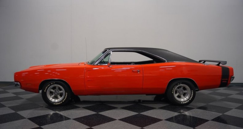 Le véhicule en question est un Charger de 1969 équipé d'un moteur V8 Hemi de 472 ci, à boîte de vitesses manuelle à 4 rapports et transmission intégrale arrière. Il présente une belle livrée orange Hemi et un intérieur noir. Le véhicule a parcouru seulement 2 801 milles et est équipé d'une suspension avant en torsion avec amortisseurs et rêglage de stabilité, ainsi qu'une suspension arrière avec air suspension et rêglage de stabilité. La transmission est équipée de subframe connecteurs. Le véhicule dispose également d'une évaporateur de climatisation, de freins à disques avant, de collecteurs d'échappement longs à tube d'échappement de 3 pouces, d'une radiateur en aluminium, d'un réglage électronique MSD, de levier de vitesse T et d'un volant à quatre branches. La carrosserie a été peintée en orange Hemi avec bandes noires et est équipée d'un toit en tissu noir, d'un spoiler arrière, d'indicateurs de direction sur le capot, de phares cachés et de luminaires chromés. Il est également équipé de roues de 15 pouces American Racing en pneumatiques P215/70R15 devant et P295/50R15 arrière. L'intérieur est noir et possède un siège banc divisé, des instruments supplémentaires, une boîte de vitesses T-Shifter, une roue volante supplémentaire, des freins assistés par puissance, un tachymètre à coussin de genou, un lecteur de CD Kenwood et un moquetage de tapis intérieur propre.. Ce descriptif est basé sur les éléments communiqués par le propriétaire avec un traitement assisté. Merci pour votre indulgence en cas de formulation perfectible. Provenance : Tennessee. Disponibilité : 7 semaines, clés en main. 113 000 € tout compris (importation, taxes, procédure d'immatriculation). Annonce publiée le 02/10/2025