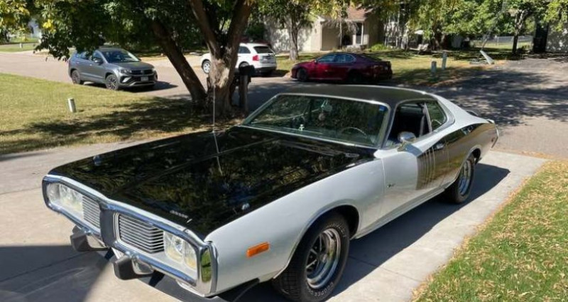 Ce magnifique 1974 Dodge Charger, issu d'une longue propriété, vient de devenir disponible. Tout au long de son stockage, il a été entretenu avec un soin extrême dans un entrepôt climatisé. Il est équipé d'un V8 à 318 ci avec un alésage en aluminium et une carburateur Holly 4bbl. Il est accompagné d'une transmission automatique à 3 vitesses Torqueflite 904 entièrement reconstruite, accompagnée de récépissés. Il est également équipé d'une roue de raidarrière standard 8.25. Le véhicule est muni de direction assistée, freins avant à disque en option, climatisation fabriquée en usine fonctionnant de manière froide, radio de tableau de bord après-market (radio originale conservée), deux échappements, pneus Cooper Cobra, et peinture et graphismes rénovés. L'extérieur est en bon état et se présente bien. Les panneaux de carrosserie (acier originel, aucune pièce de remplacement), lignes, espacements, etc. sont tous en bon état, sans problèmes. La capote noire en vinyle est en bon état, sans problème de rouille ou bulles. L'intérieur est également en bon état et se présente bien. Les sièges, panneaux de porte, tapis, panneau de tableau de bord, tableau de bord, etc. sont tous en bon état. Toutes les lumières, jauges, radio, aubes, indicateurs de direction, etc. sont toutes en bon fonctionnement. L'intérieur de la voiture est aussi remarquable que le reste du véhicule. Aucune rouille, fissures, zones molles ou points de préoccupation ne sont visibles sous le véhicule. Certains documents et récépissés seront livrés à la vente. C'est un muscle car prêt à rouler d'une manière à faire sans inquiétude qui peut être conduit de coast to coast. Des photos et vidéos supplémentaires sont disponibles à la demande.. Provenance : , USA. Disponibilité : 7 semaines, clés en main. 30 500 € tout compris (import, taxes, procédure d'immatriculation). Annonce publiée le 16/10/2025