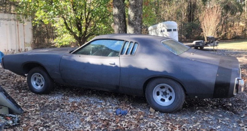 1974 MOPAR Charger, 440 engine, less than 70, 700 miles, rebuilt 727 auto transmission, 1969 383 magnum exhaust manifolds, Mopar alum intake, summit 750 dual feed single pumper carb, factory A/C, disc brakes, new plugs, wires, coil, new 2 1/2 Flow master mufflers, interior parts, auto on column, missing radiator, gas tank, driveshaft, repair on deck lid, wire tied front and rear bumpers, black paint, black interior, repair on deck lid, cash in person accepted, clean title in owner's name. Provenance : Arkansas. Disponibilité : environ 7 semaines, clés en main. 17 000 € tout compris (importation, taxes, procédure d'immatriculation). Annonce publiée le 27/11/2025